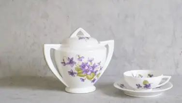アンティーク アンティークシュガーボウル 菫 フランス LIMOGES UNIQUE /アンティーク食器 アンティークシュガーボウル 菫 フランス LIMOGES UNIQUE /アンティーク食器 フランス LIMOGES UNIQUEとは、フランスのリモージュ地方で作られる、高級磁器ブランドです。1929年に設立され、現在でも伝統的な手法で製造されています。通常のシュガーポットよりもサイズが大きめでたっぷり収納できます。珈琲や紅茶などの収納にもおすすめ。 2025.10.10 アンティークアンティーク食器フランスアンティーク