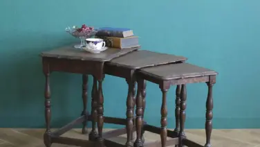 アンティークネストテーブル フランス アンティーク家具 “ネストテーブル”とは文字通り、サイズの異なる同型のテーブルを複数、入れ子状(ネスティング)に組み合わせたテーブル。
