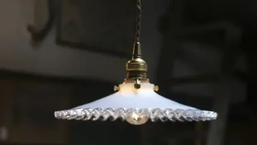 アンティーク アンティーク ガラスシェードフリルランプ ミルクガラス 照明 灯具E26 アンティーク雑貨