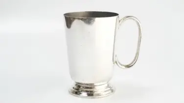 アンティーク シルバープレートビアカップ イギリス シンプルな形のタンカード シンプルで使いやすい形状のアンティークシルバープレート・コブレット。手に持った時にしっくりなじみ、 シルバープレート特有の口当たりの良さが飲み物の味を引き立てます。高級感のある作りから、イギリスでは昔から貴族の晩餐会などには銀器が好まれて使われていました。