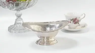 アンティーク ヴィンテージ スモールボウル B(幅18cm)ヴィクトリアンな装飾が素敵なシルバーの足つきボウル