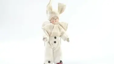 ヴィンテージ うさぎ耳のドール アンティークドール ビスクドール 陶器人形 大きな襟元に赤い靴はまるでサーカスのような衣装です。うさぎの耳なのでもしかしたらイースター用のドールかもしれません。