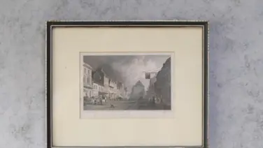 アンティークリトグラフピクチャー イギリス 鋼版画 ウェールズ北部デンビーシャー州の都市 Wrexham アンティーク雑貨 画家 H. Gastineau による原画を基に、版画家 W. Wathis によって精緻に彫版された作品で、当時の町並みや人々の暮らしを活き活きと伝えています。