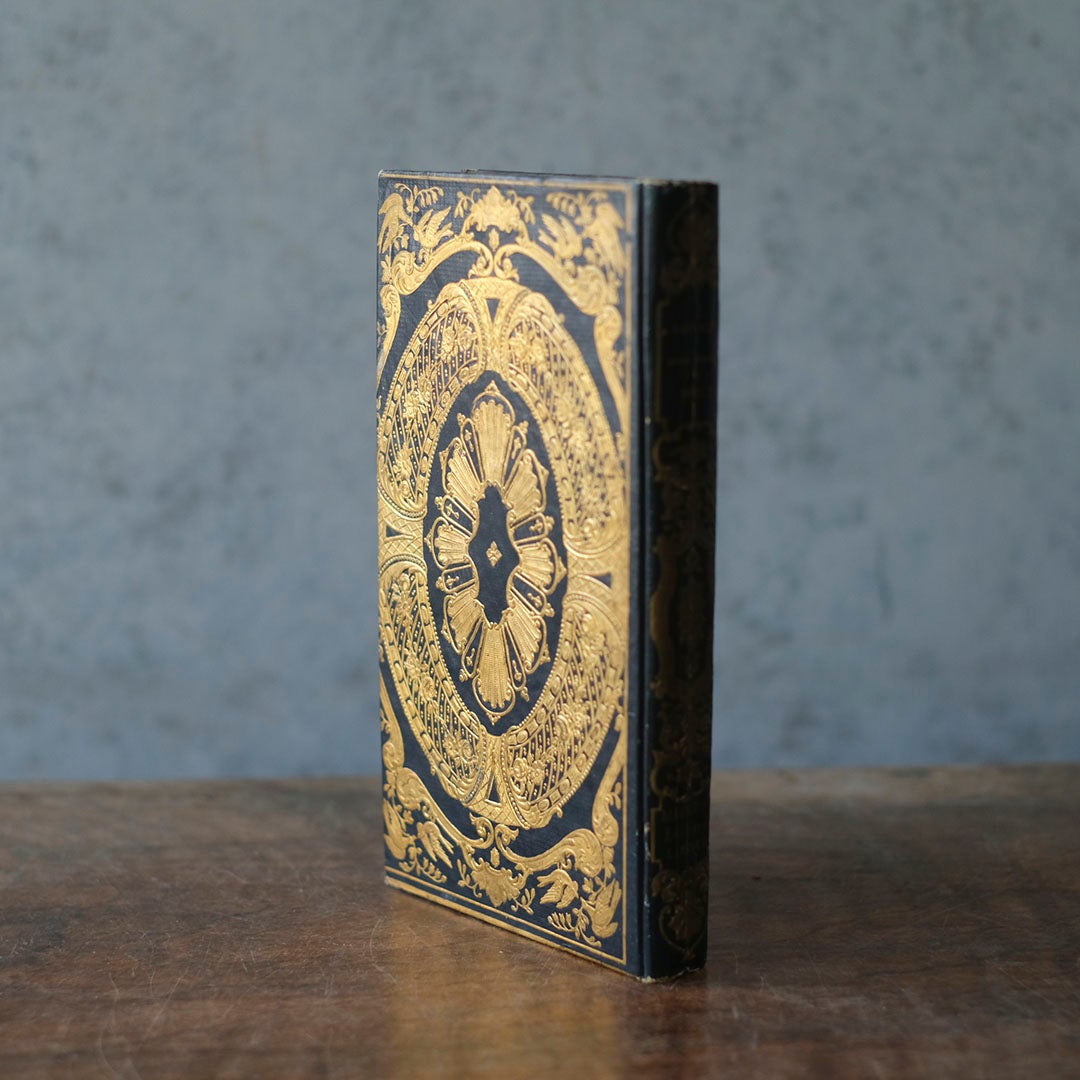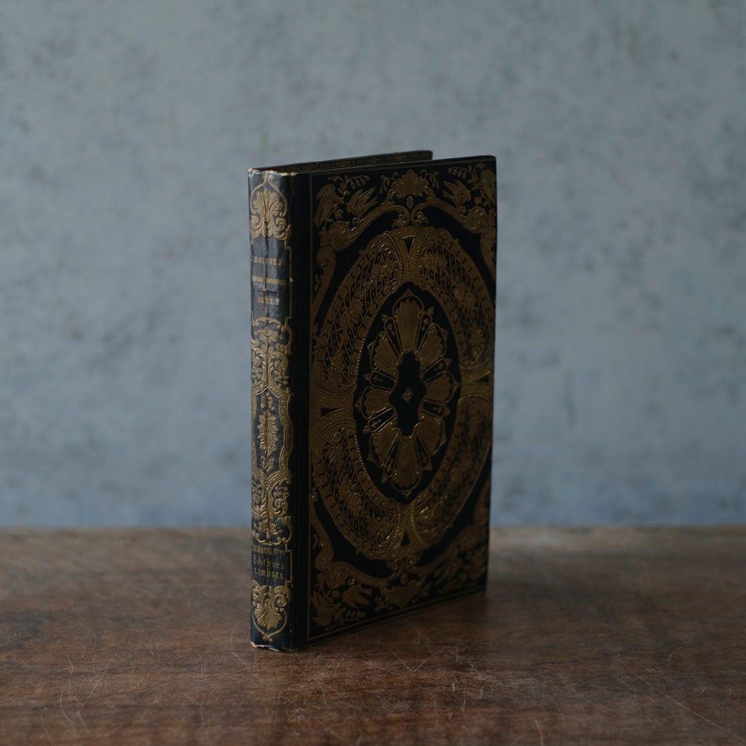 デザインの見どころは、職人の手仕事による繊細な金のラインが織りなす見事なコントラスト。いかにもフランスの古い書庫で大切に保管されていたようなロマンを感じさせてくれます。
