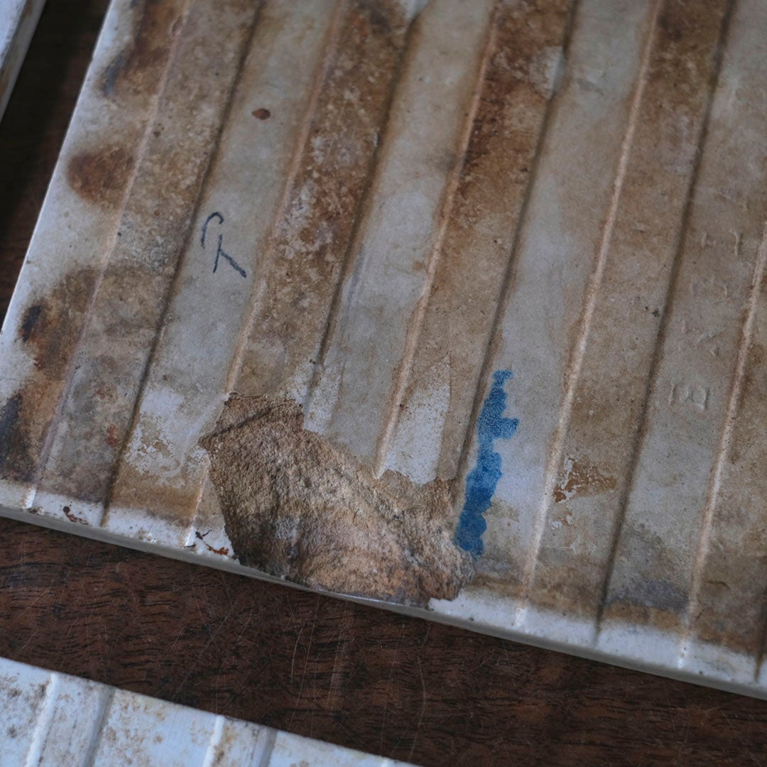 100年以上前に作られた歴史あるアンティークタイルのため小さなダメージはありますが、それほど目立つものではありません。アンティークならではのコンディションとなります。掲載お写真をご確認ください。