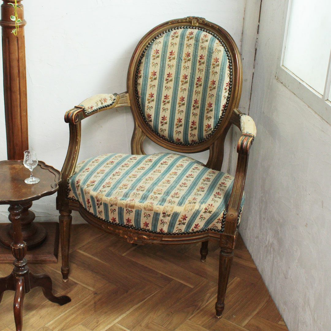 アンティーク サロンチェア ルイ16世様式 フランス 優雅で気品のあるシルエットが素敵な肘掛け椅子/アンティーク家具