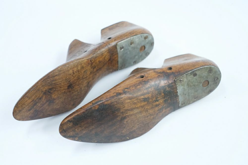 年月を経た古びた木や鉄の雰囲気が歴史を物語る、アンティークシューモールドの左右ペア