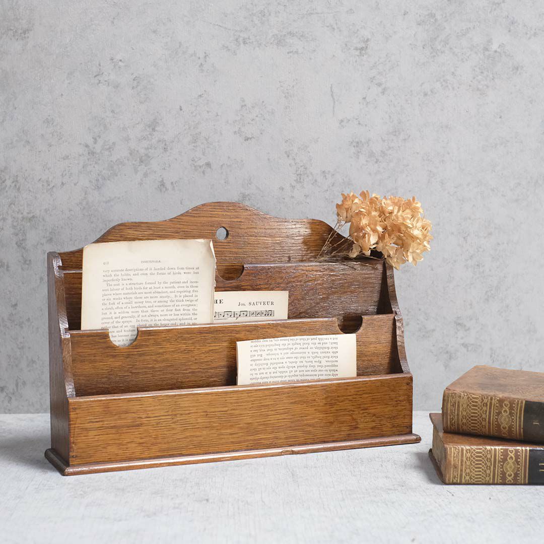 アンティークレターラック イギリス 木製 手紙やポストカードの卓上収納ボックス