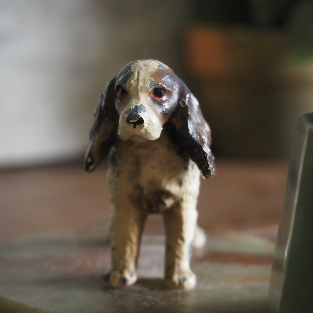 アンティーク スパニエル犬のインクケース オーストリア ブロンズ製大理石1930年代