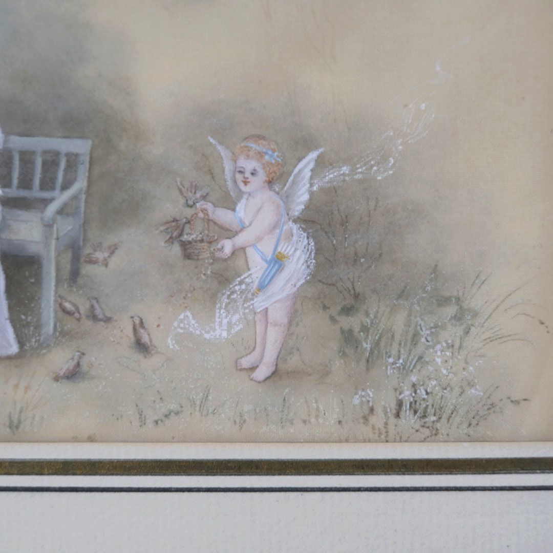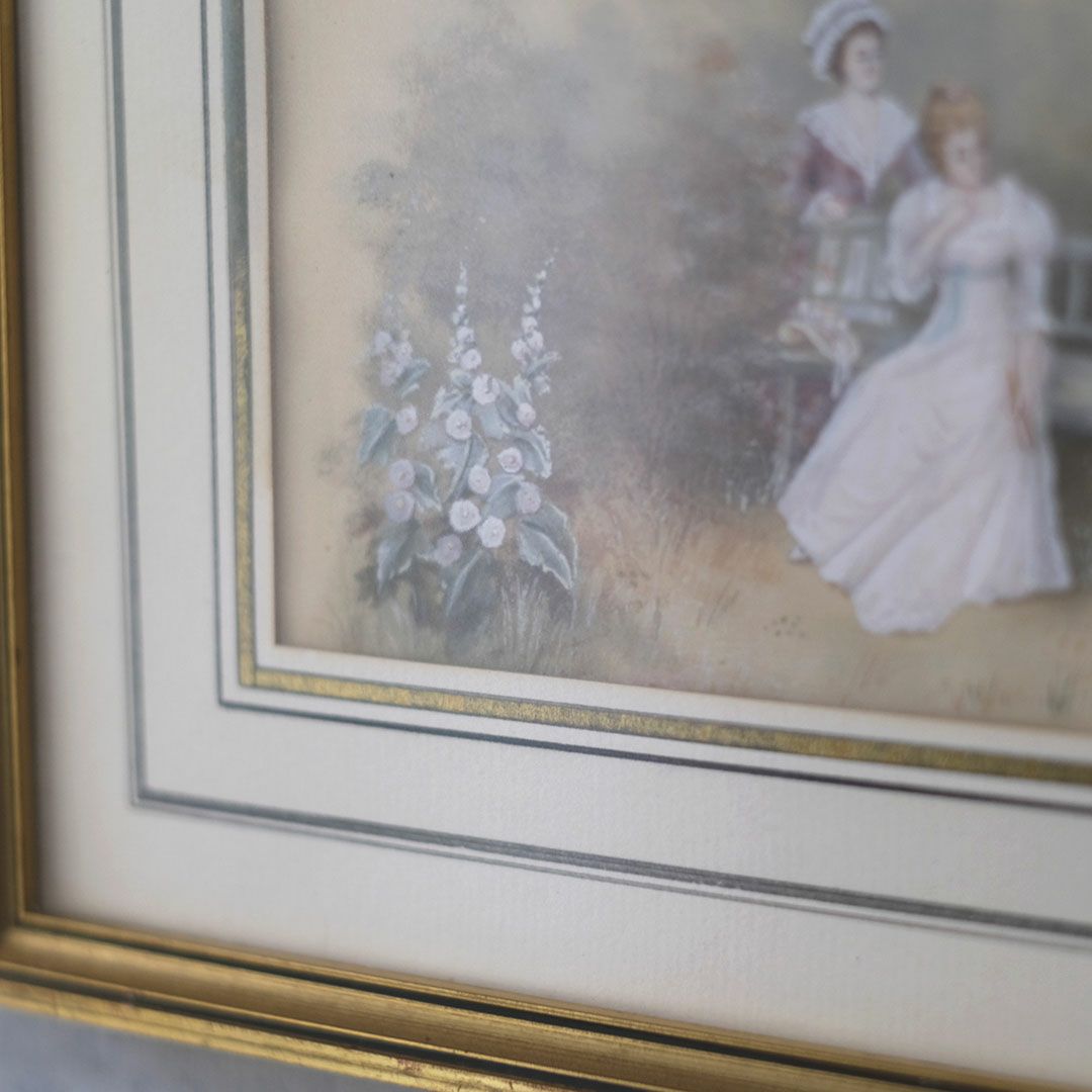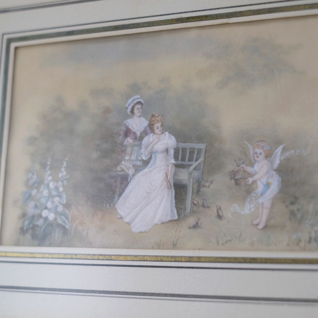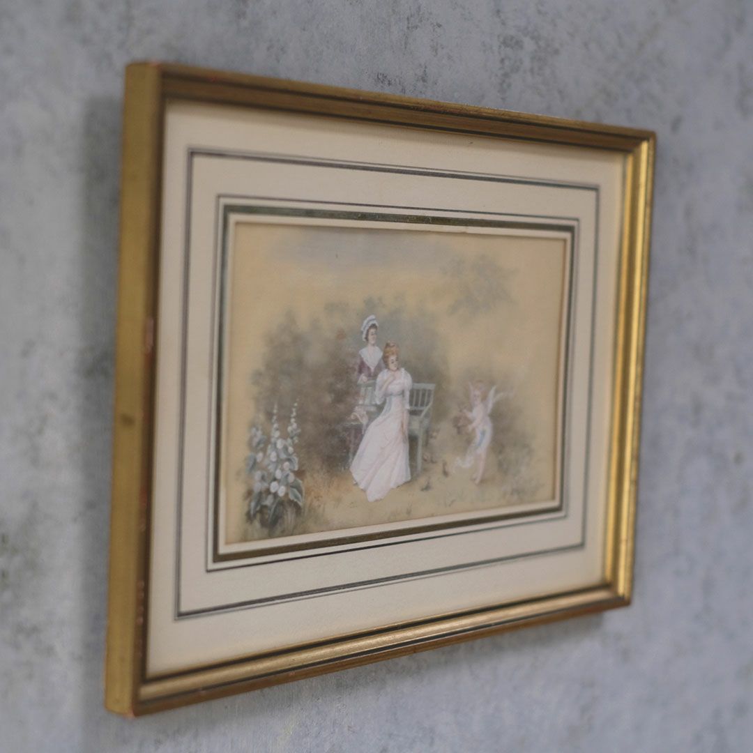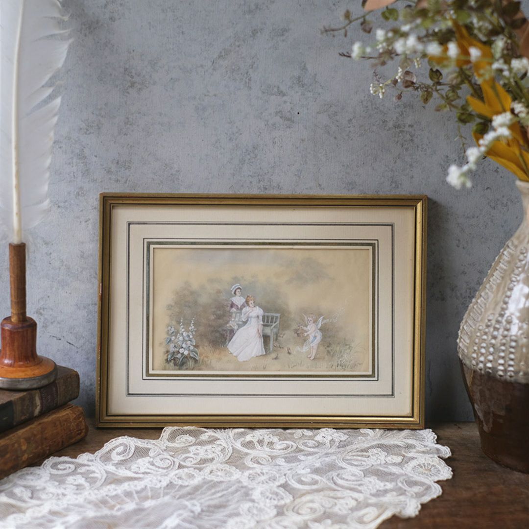 ヴィンテージプリントピクチャー 貴婦人と天使の庭 フランス