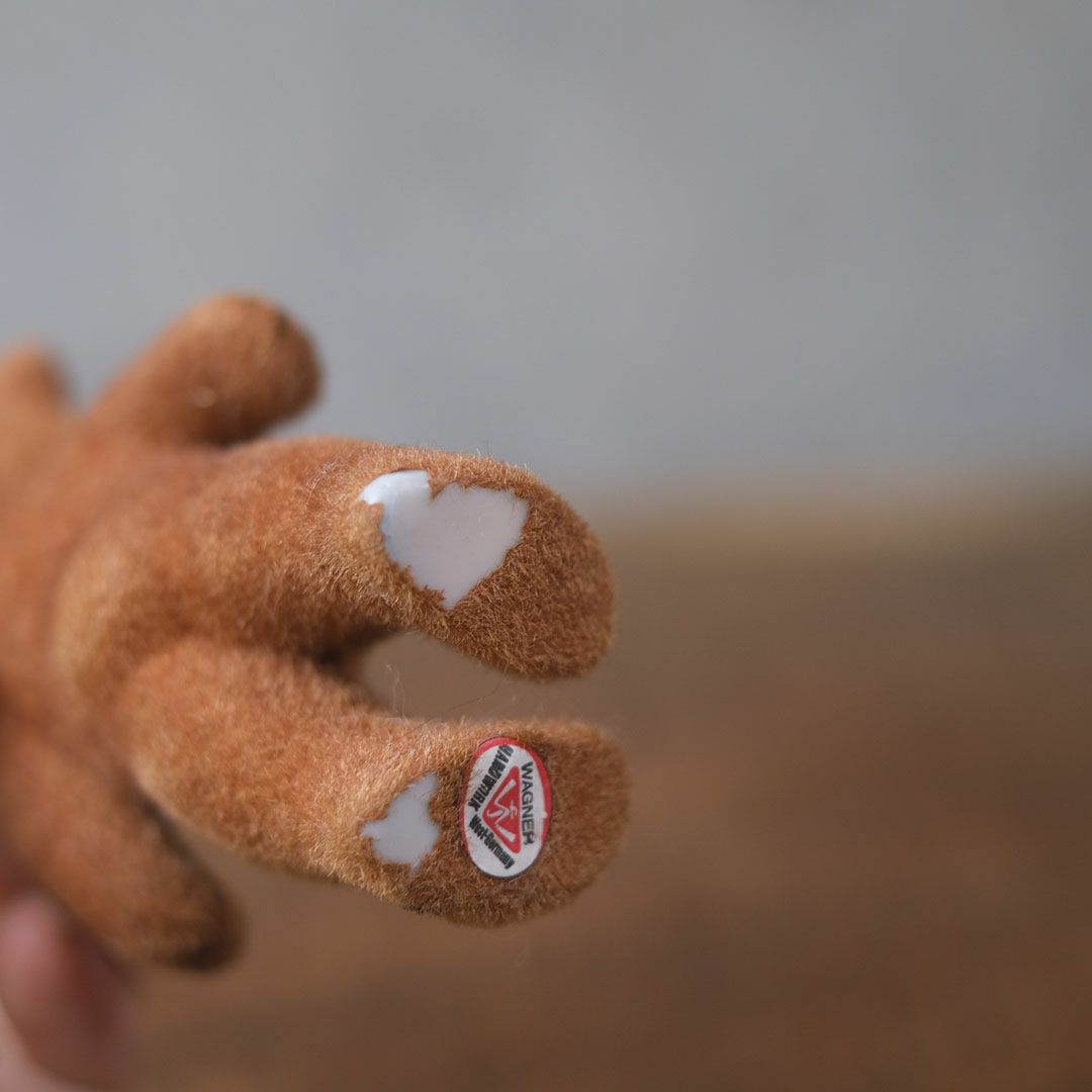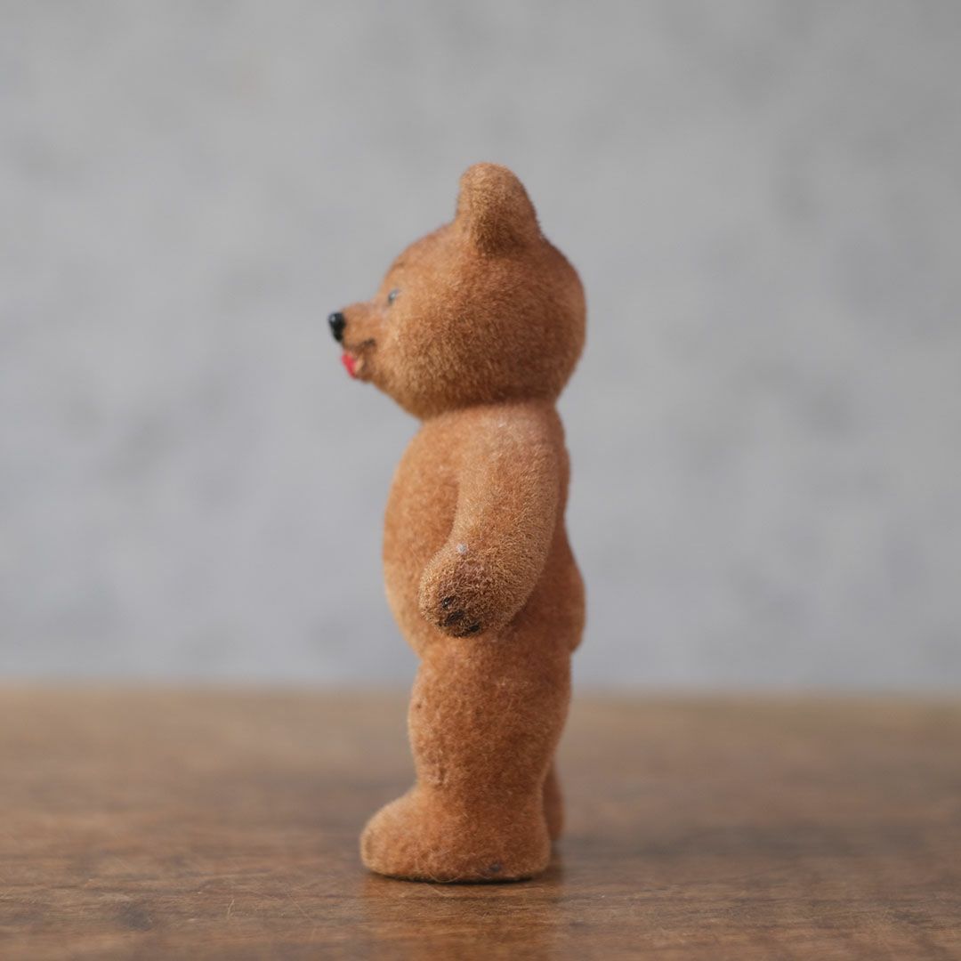 西ドイツ時代に作られた、WAGNER社の小さなフロッキーベアです。フロッキー加工によるふんわりとした起毛感が愛らしく、どこかレトロで懐かしい雰囲気を漂わせています。