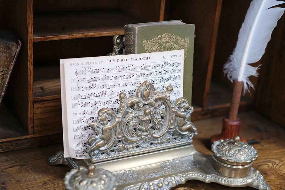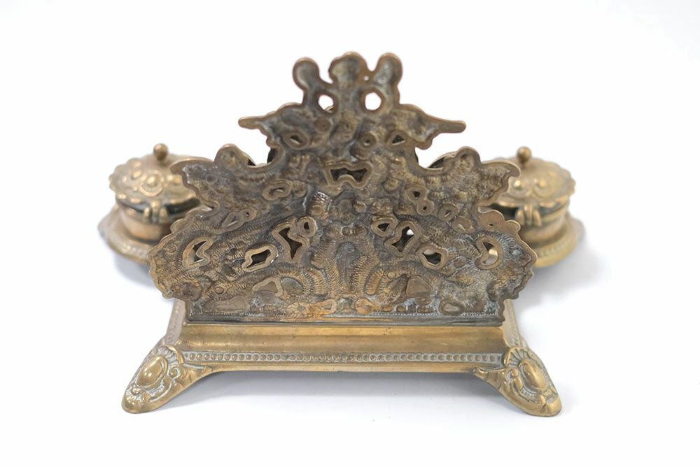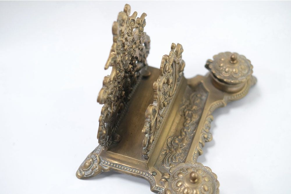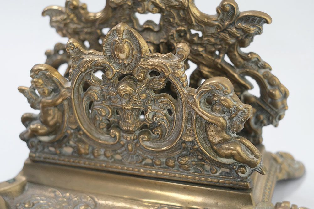 ロカイユ、植物、天使などバロック調のモチーフがふんだんに使用された、アンティークのレタースタンド。安定感があるためデスクにおいて手紙や冊子、大きめの雑誌もを挟む事が出来ます。