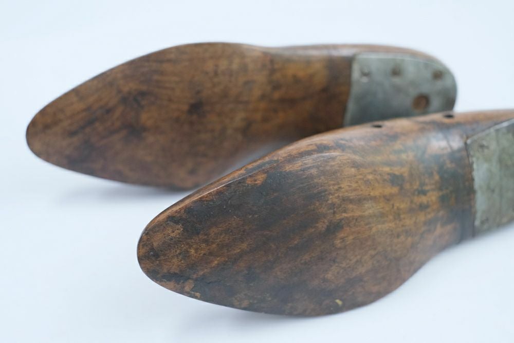 年月を経た古びた木や鉄の雰囲気が歴史を物語る、アンティークシューモールドの左右ペア