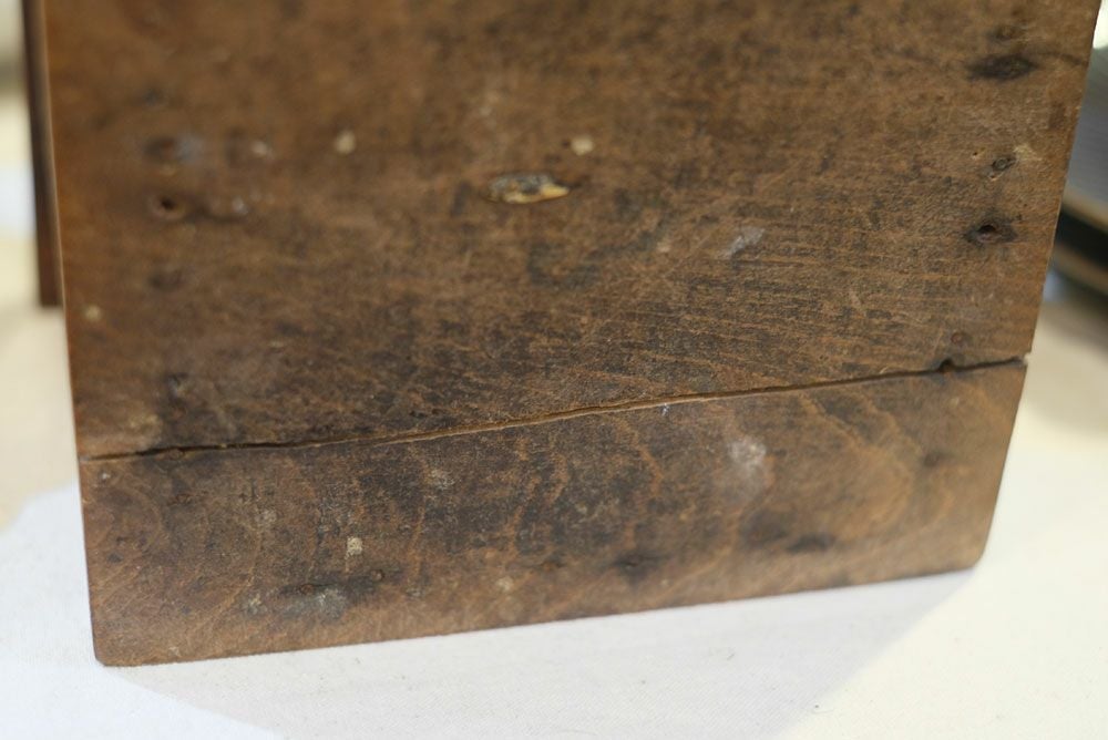 ダメージは多々ありますが、ショップのディスプレイ雑貨としてお使い頂いても雰囲気があってオススメ。引き出しの中も状態はまずまずで長年大事に使用されてきた事が一目で分かります。