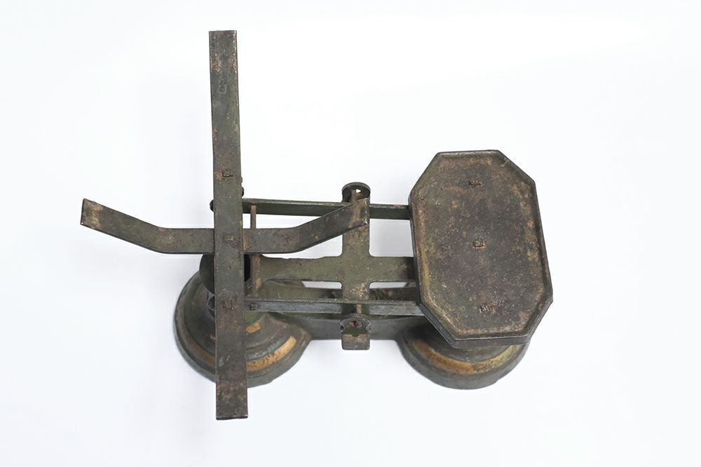 錆など経年によるものはありますがユラユラと動く天秤の動きはスムーズです。何かを乗せて重さを量りたくなる衝動に駆られる趣きのあるアンティーク雑貨。