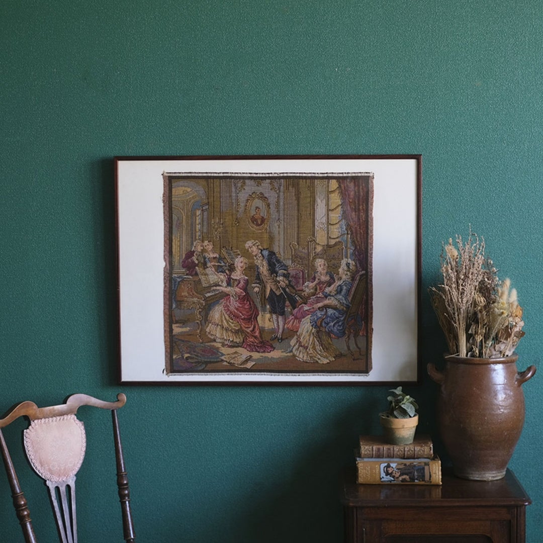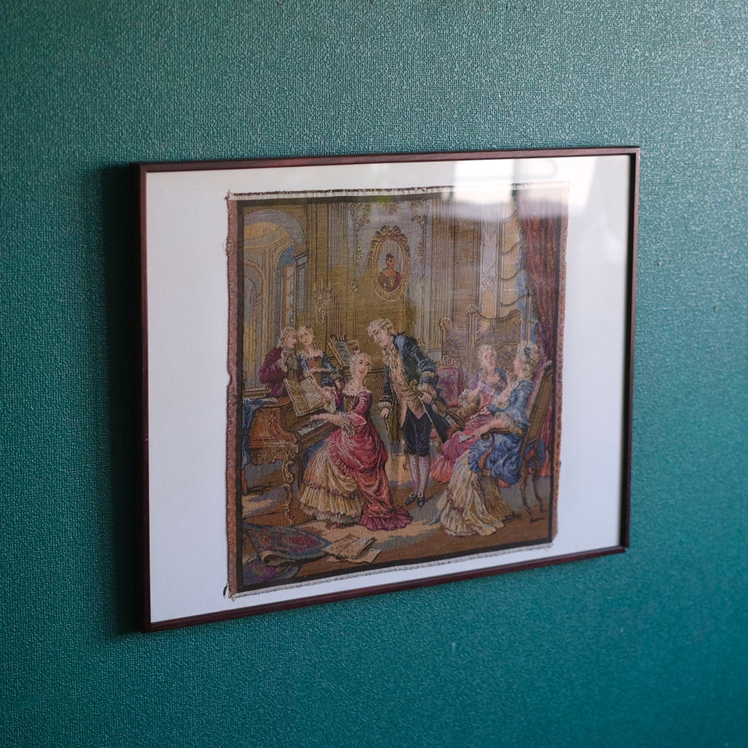 アンティークタペストリー 額装 宮廷音楽会ベルギー