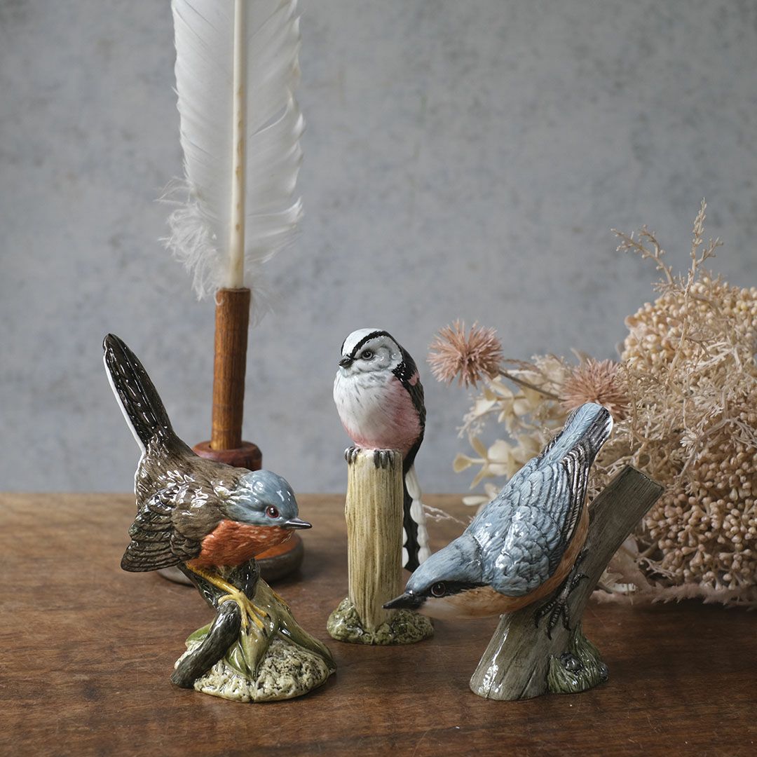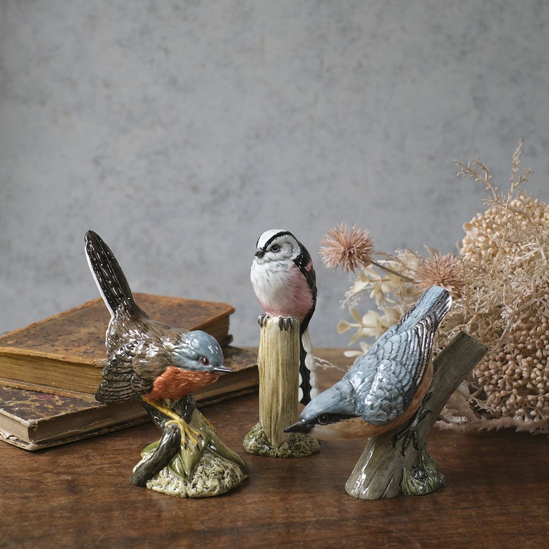 それぞれの鳥が持つ個性豊かな魅力を、J. Mackならではの繊細な筆致と美しい色彩で表現した、特別なコレクションです。お部屋に飾れば、まるで英国の自然のワンシーンを切り取ったような、穏やかで優しい空気が広がります。手作りのフィギュリンが持つ、一つとして同じものはない、唯一無二の魅力をご堪能ください。