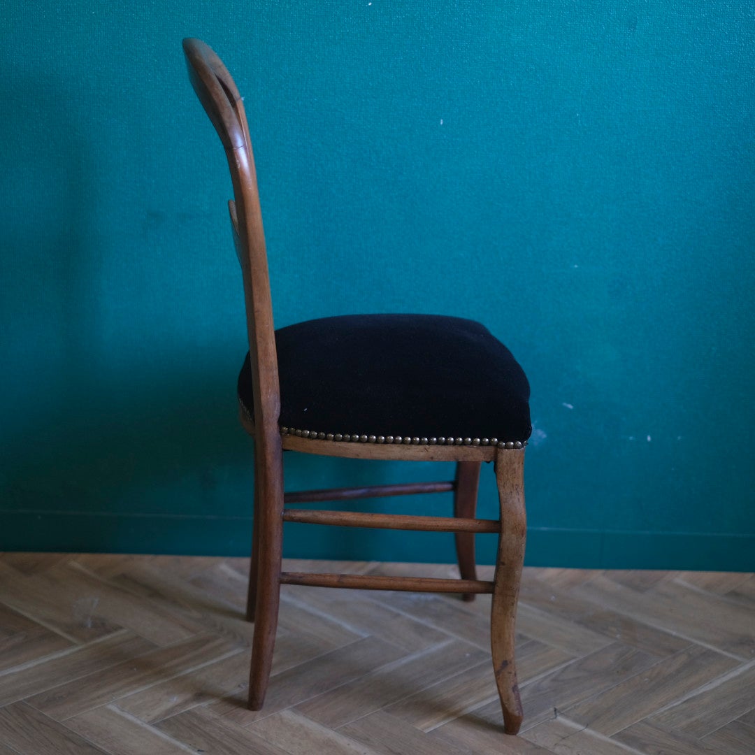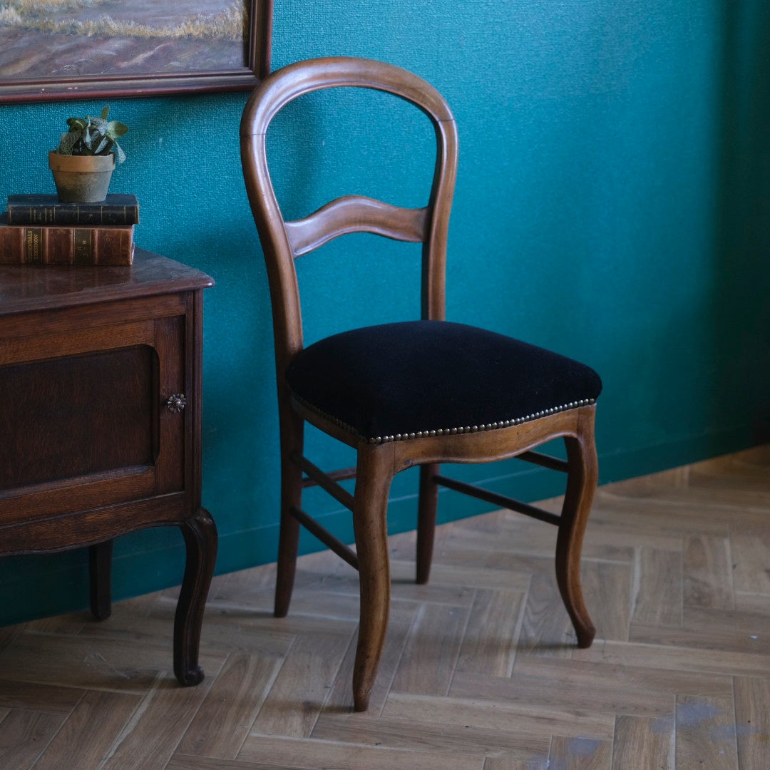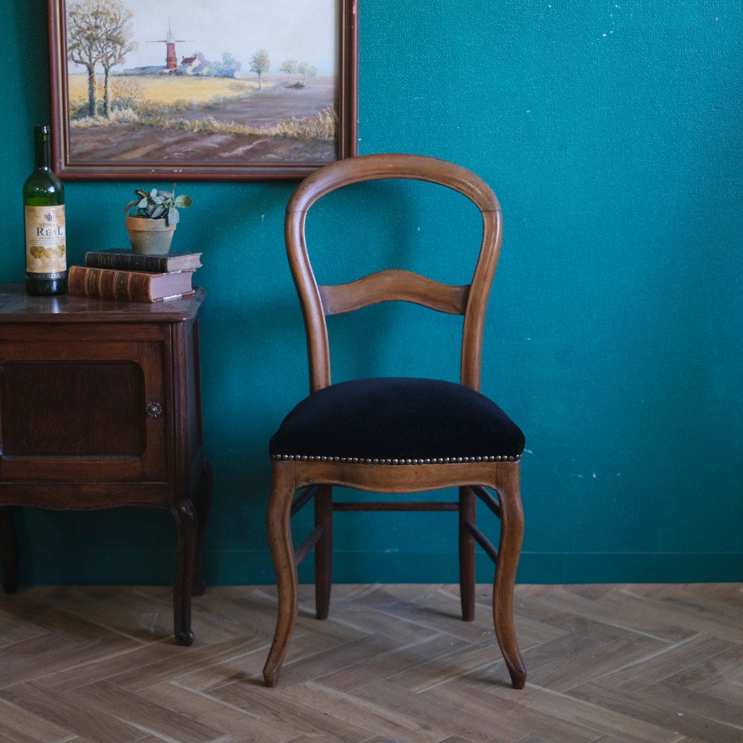 フランスアンティーク バルーンバックチェア 黒ベルベット 張り替え済み