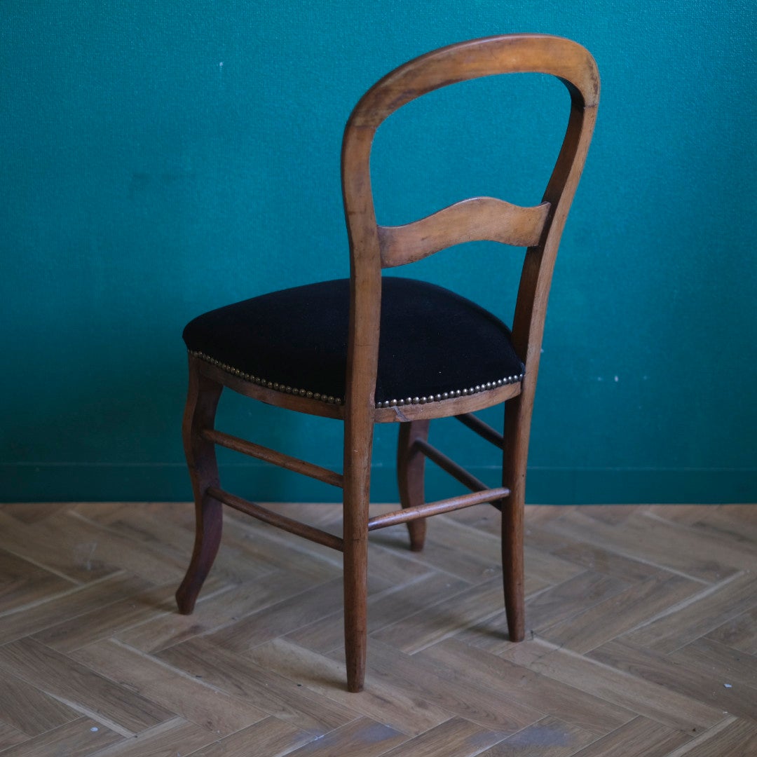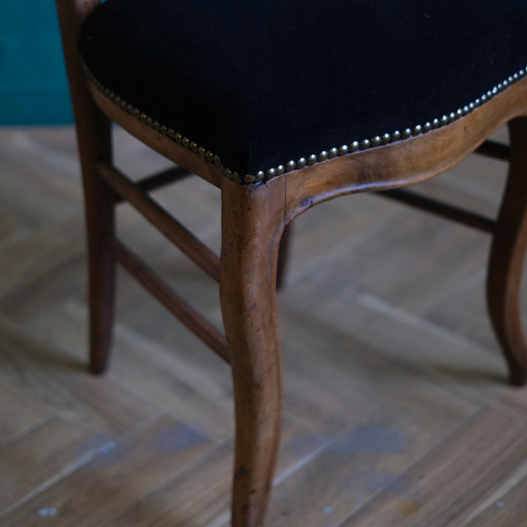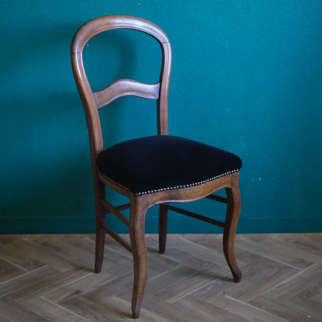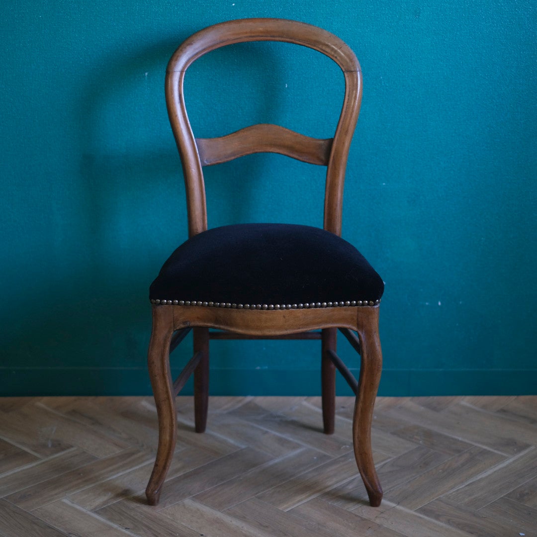 フランスアンティーク バルーンバックチェア 黒ベルベット 張り替え済み