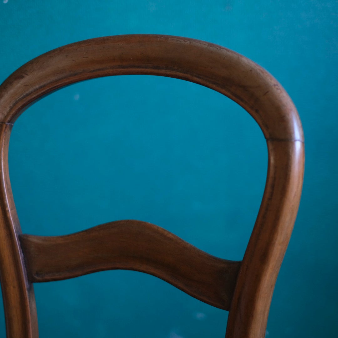 古いフレーム特有の小傷や色の深まりは、フランスで大切に受け継がれてきた証であり、アンティークならではの豊かな風合いです。がたつきやぐらつきはなく、構造はとてもしっかりしています。国内で張り替えたベルベットシートも弾力があり、座り心地は抜群。安心して日常使いできる頼もしい一脚です。