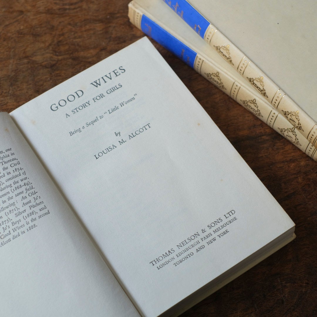 クリーム色の表紙に、ロイヤルブルーと金の箔押しが映えるハードカバーの洋書です。Thomas Nelson & Sons Ltdが手がけたNelson's Classicsシリーズのうちの1冊で、背表紙には金のアラベスク装飾と星のボーダーが段々と並び、手に取るだけでどこか懐かしくて上品な気持ちになります。
