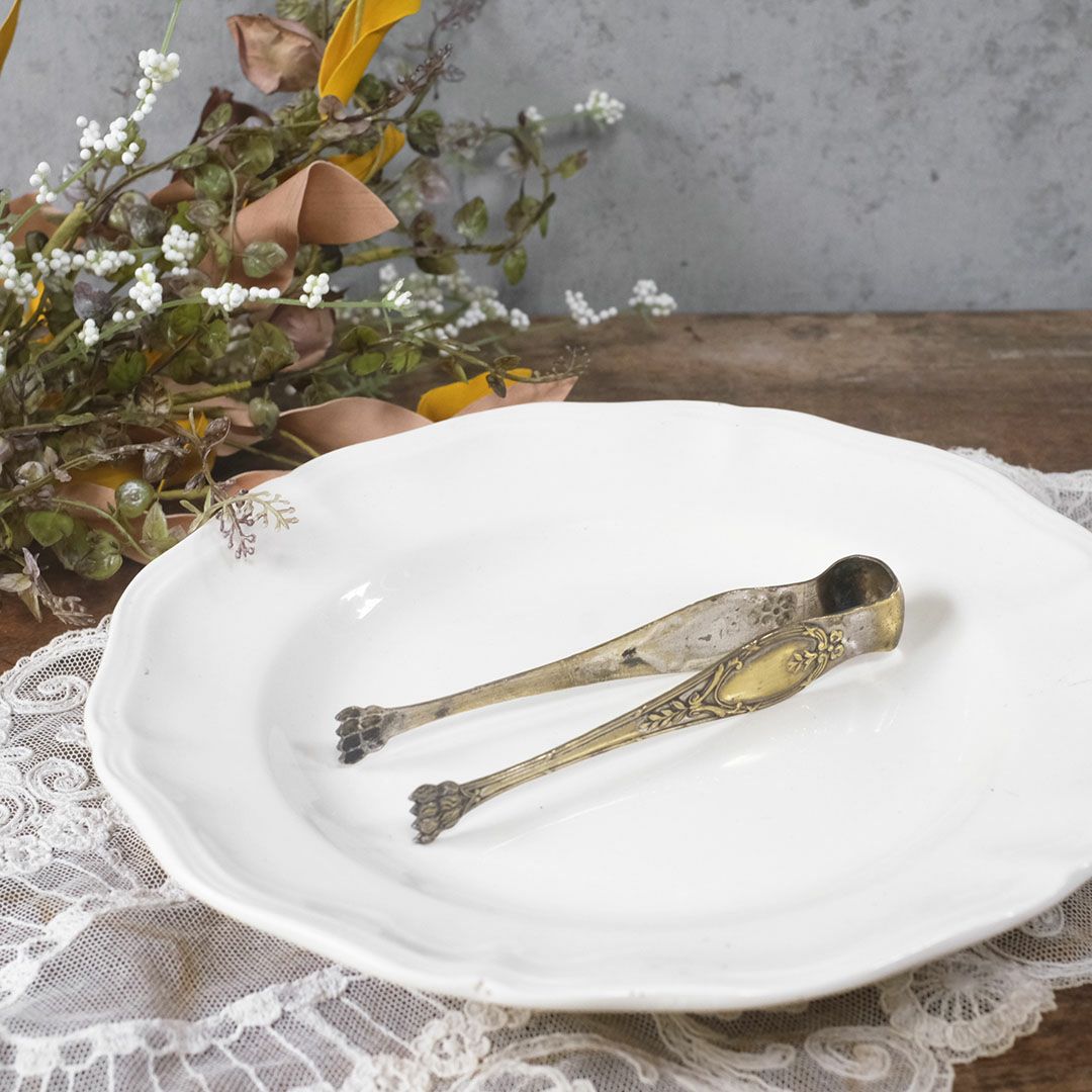 19世紀末から20世紀初頭のフランスでは、砂糖は贅沢品であり、こうしたトングは上流階級のサロンや優雅なティーセットの中で用いられてきました。人々が砂糖をひとつまみ加えるたびに交わした会話や笑顔を思わせるような、物語を秘めた小さな道具です。