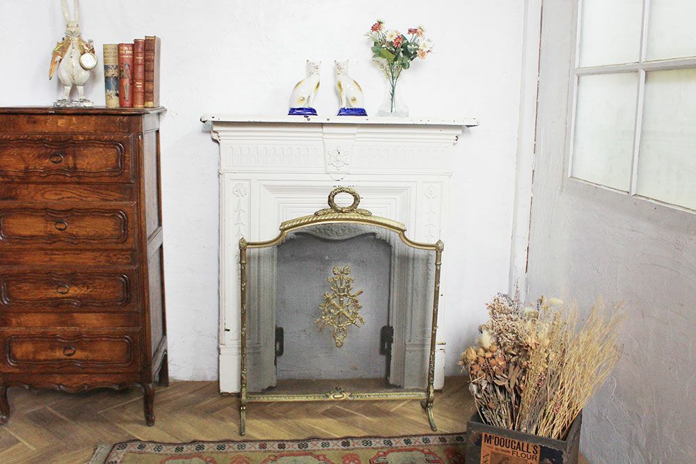 フランスのアンティークの暖炉の前に置く真鍮製の衝立て