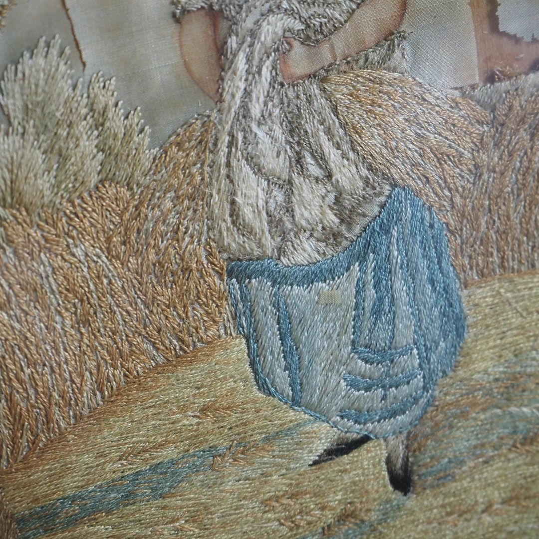 アンティーク ソーイングアート 刺繍絵画 楕円のアンティークゴールド壁掛けフレーム 額 手縫いによって描き出された少女の絵画