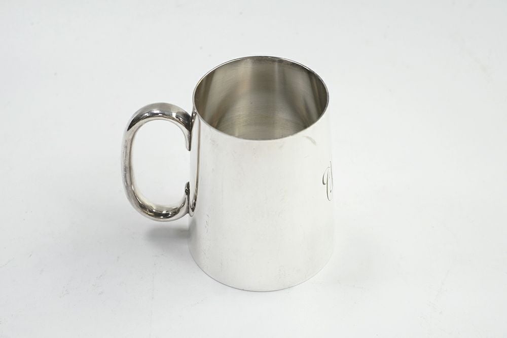 1920年代に作られた、古いアンティークシルバービアカップ。美味しく冷えた状態で飲み物がいただける特性があります。