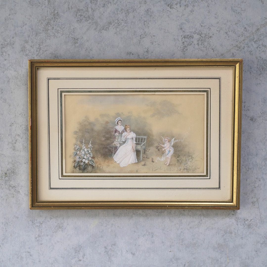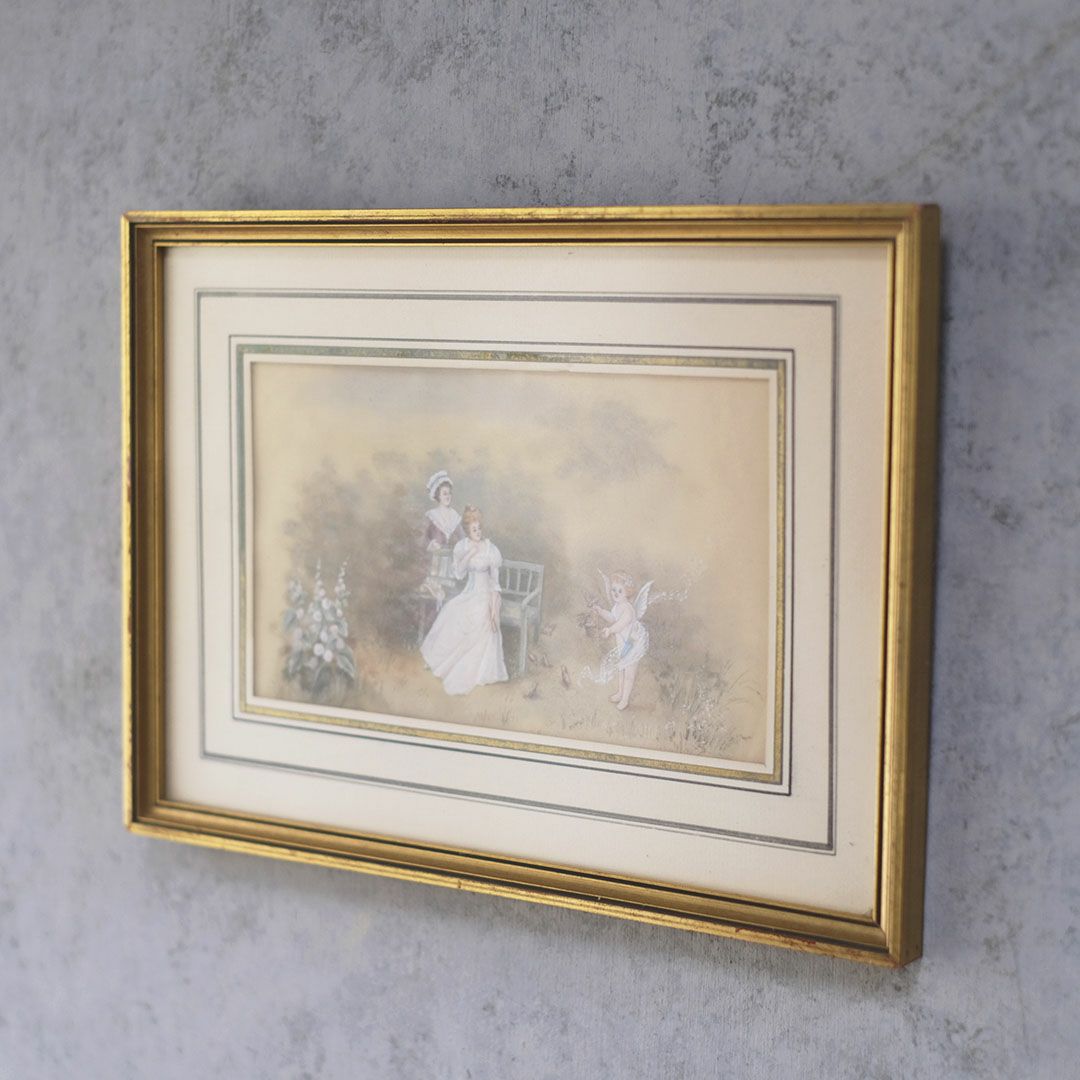 ヴィンテージプリントピクチャー 貴婦人と天使の庭 フランス