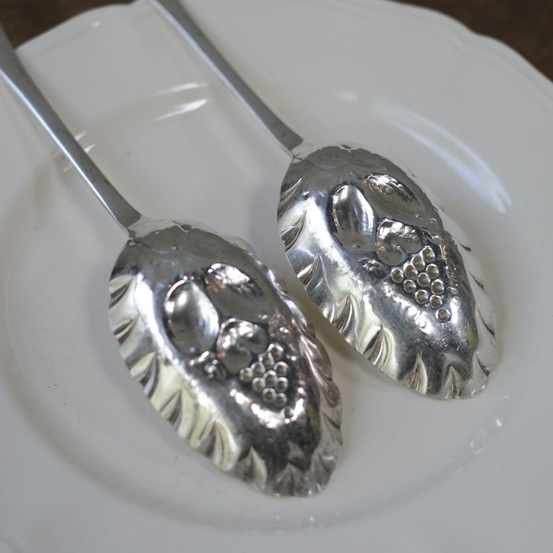 アンティーク ベリースプーン シルバープレート ルプッセ装飾 イギリス