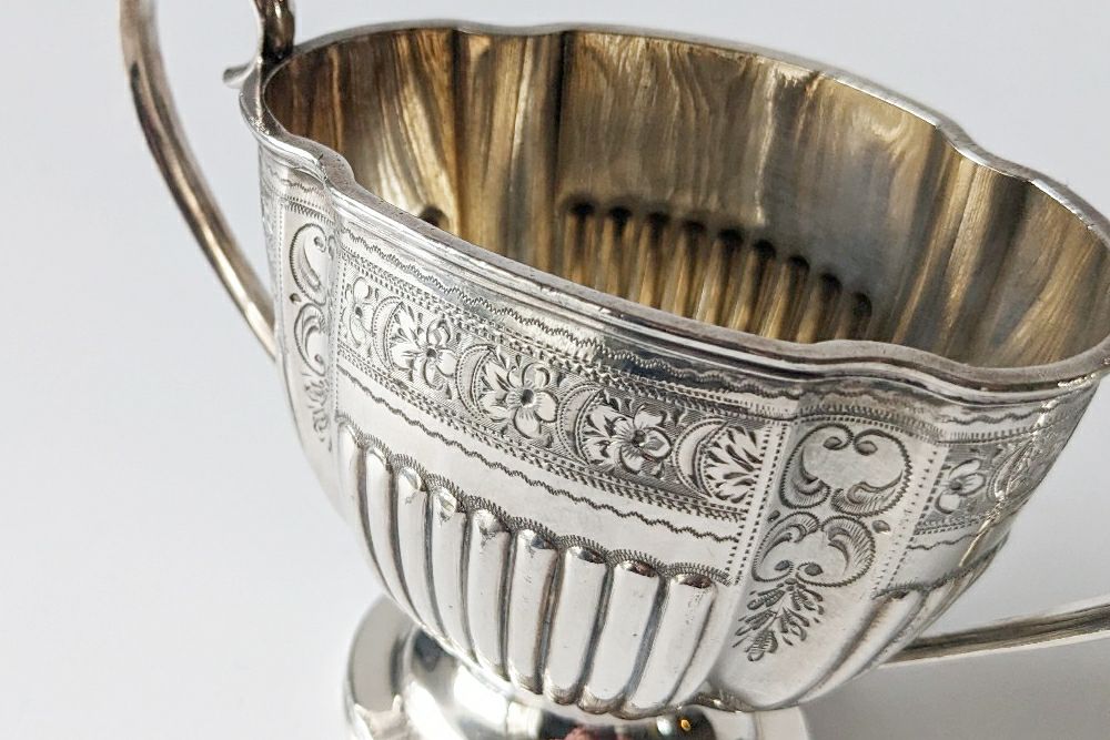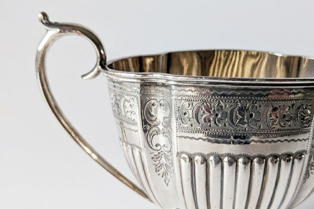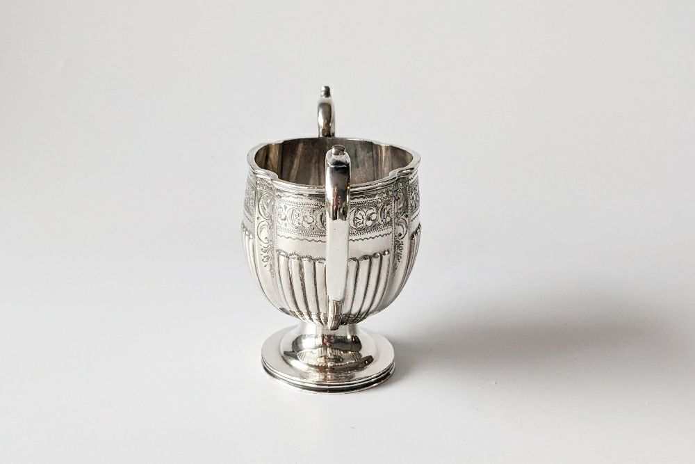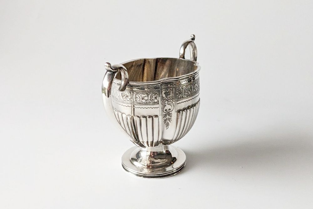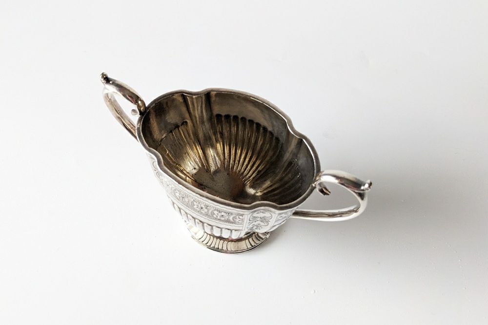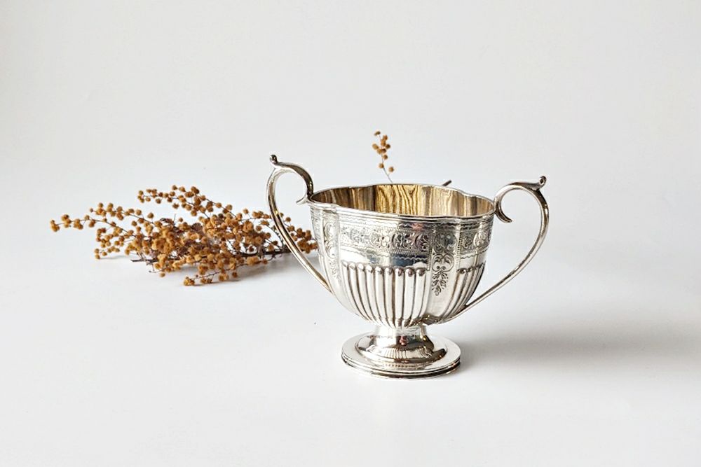 小ぶりなサイズで上品なシルエットのアンティークシュガーボウル。王室御用達でもあるシルバースミスW&H(ウォーカーアンドホール)社製です。
