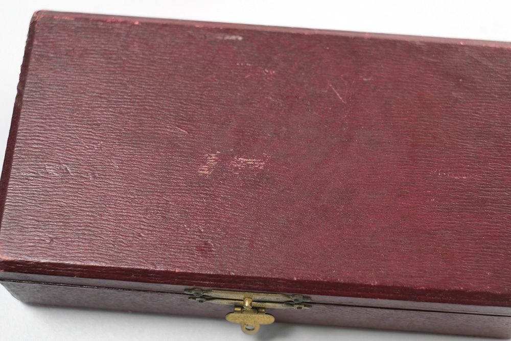 お塩と胡椒などの調味料を入れてディナーテーブルに置かれた古いスパイス皿のセット。専用のケースにおさまる姿は特別な雰囲気。