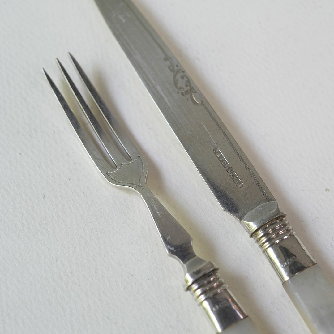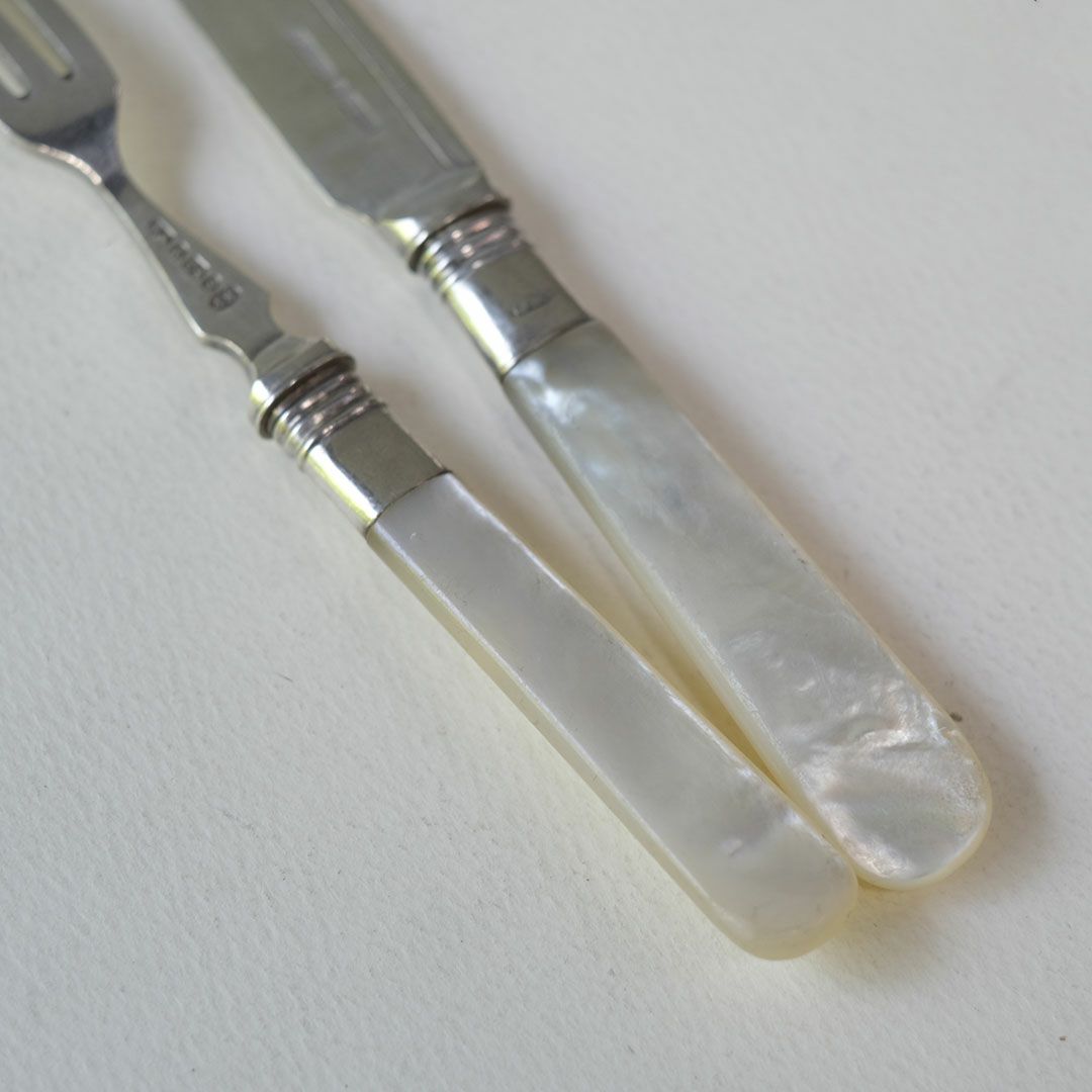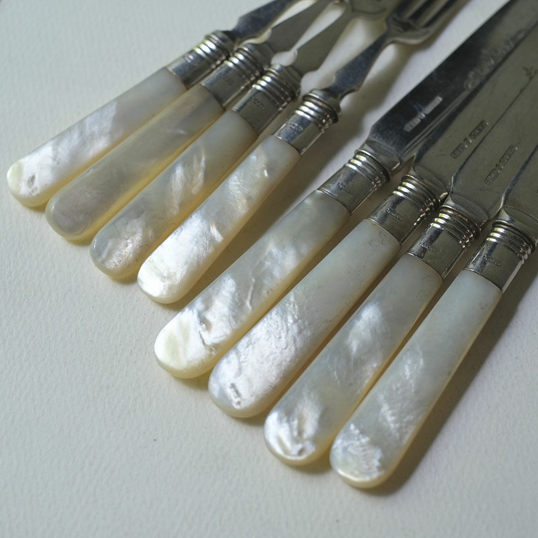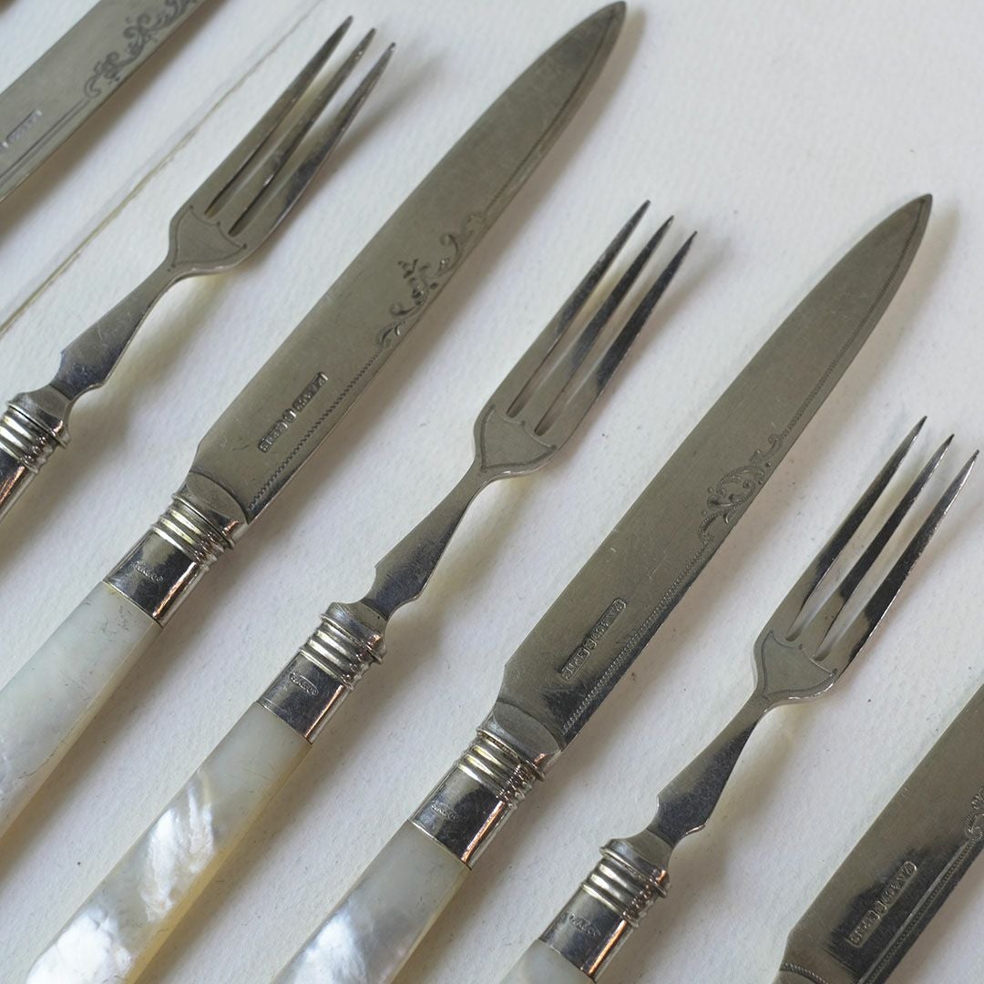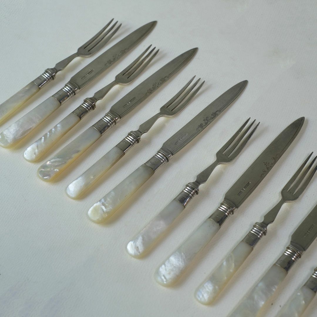 ヴィクトリア時代の気品を感じる、白蝶貝ハンドルのアンティークカトラリーセット