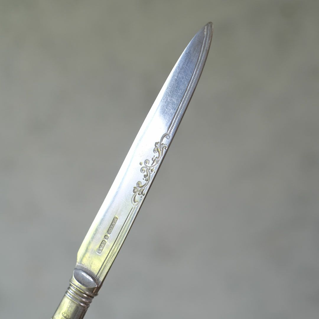 古いお品のためシルバープレートの刃に擦れや傷がございます。掲載お写真をご確認ください。