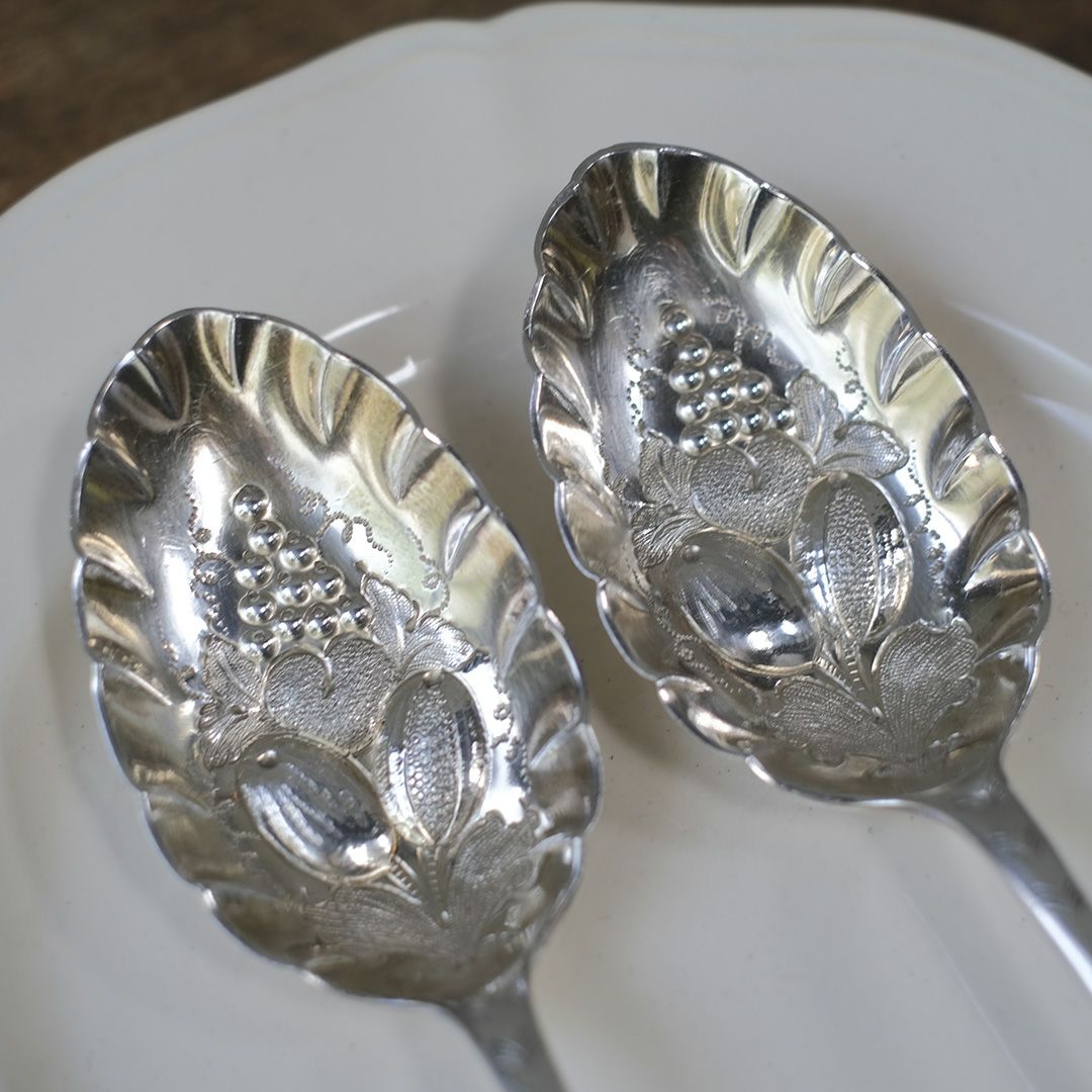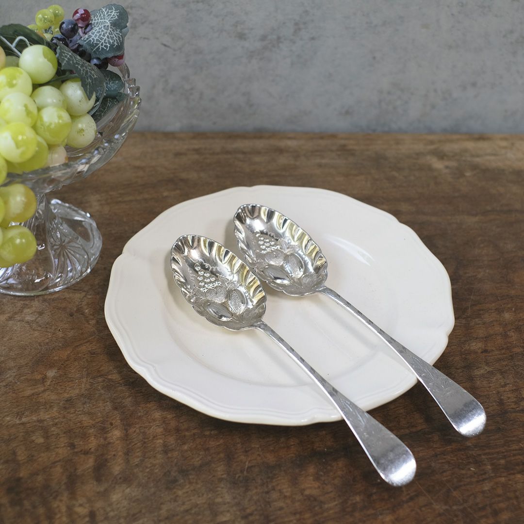 アンティーク ベリースプーン シルバープレート ルプッセ装飾 イギリス