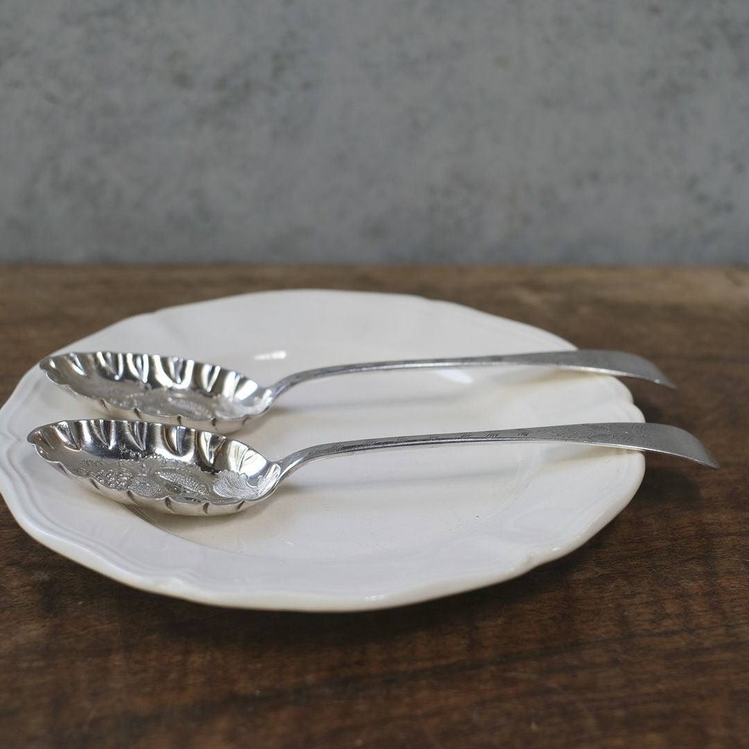 ベリー類の果実をすくいやすいように作られた特別な形は、ジャムスプーンとしても重宝されていました。1900年代初期にイギリスで作られたこのスプーンは、時を超えて現代に受け継がれ、アンティークならではの温もりと風格を漂わせています。