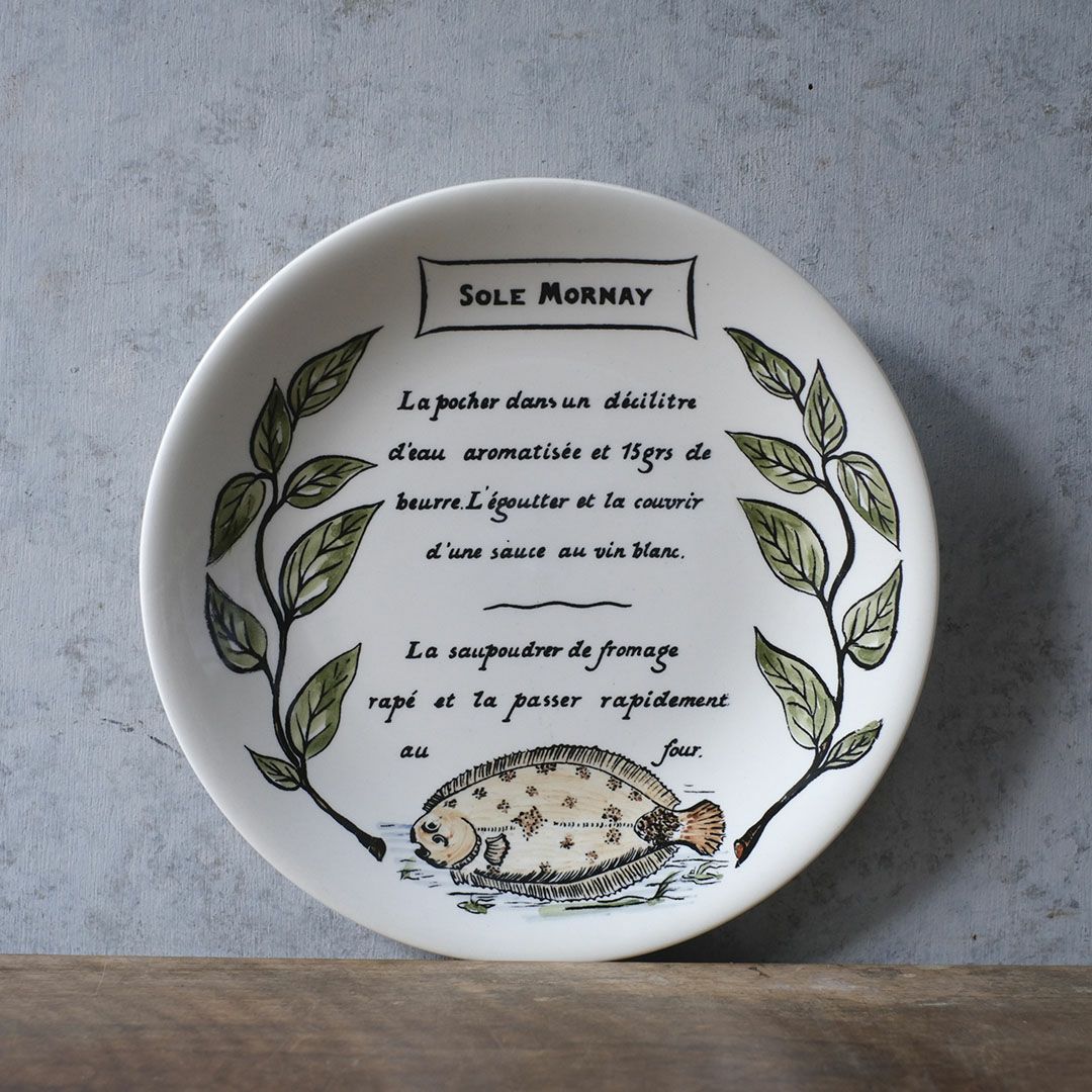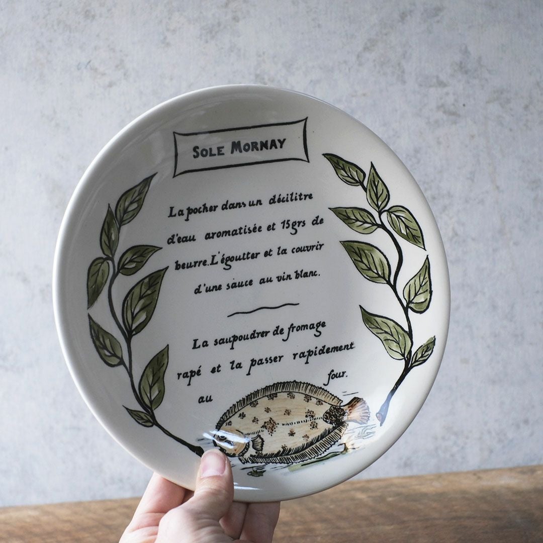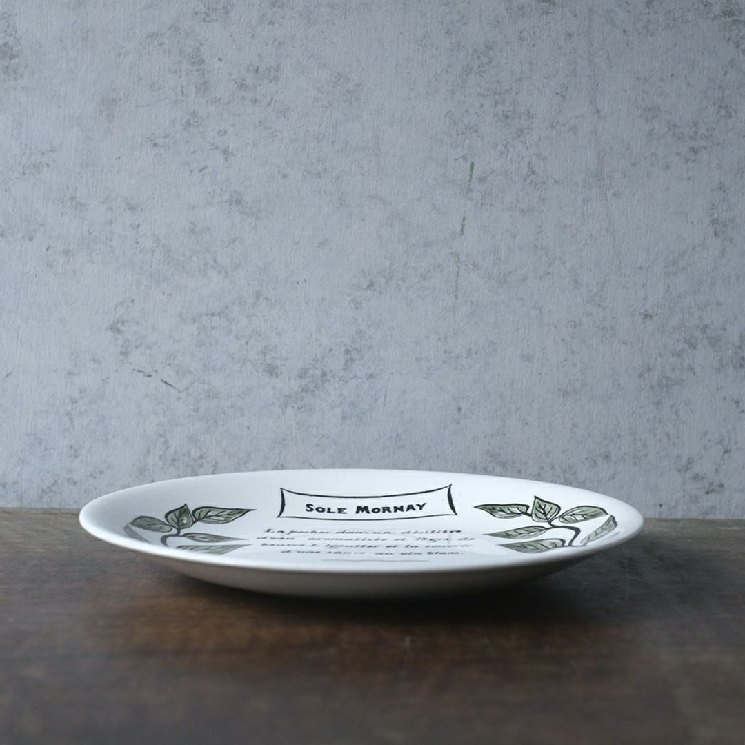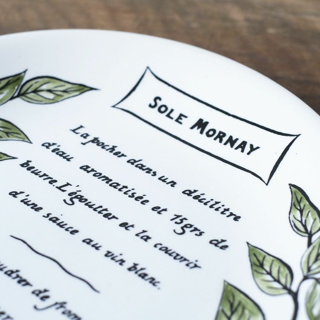 フランス名窯GIEN(ジアン)の、遊び心ある“SOLE MORNAY”(舌平目料理)レシピが描かれたヴィンテージプレート