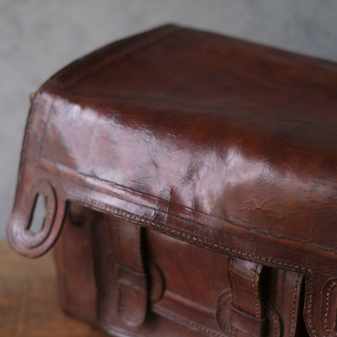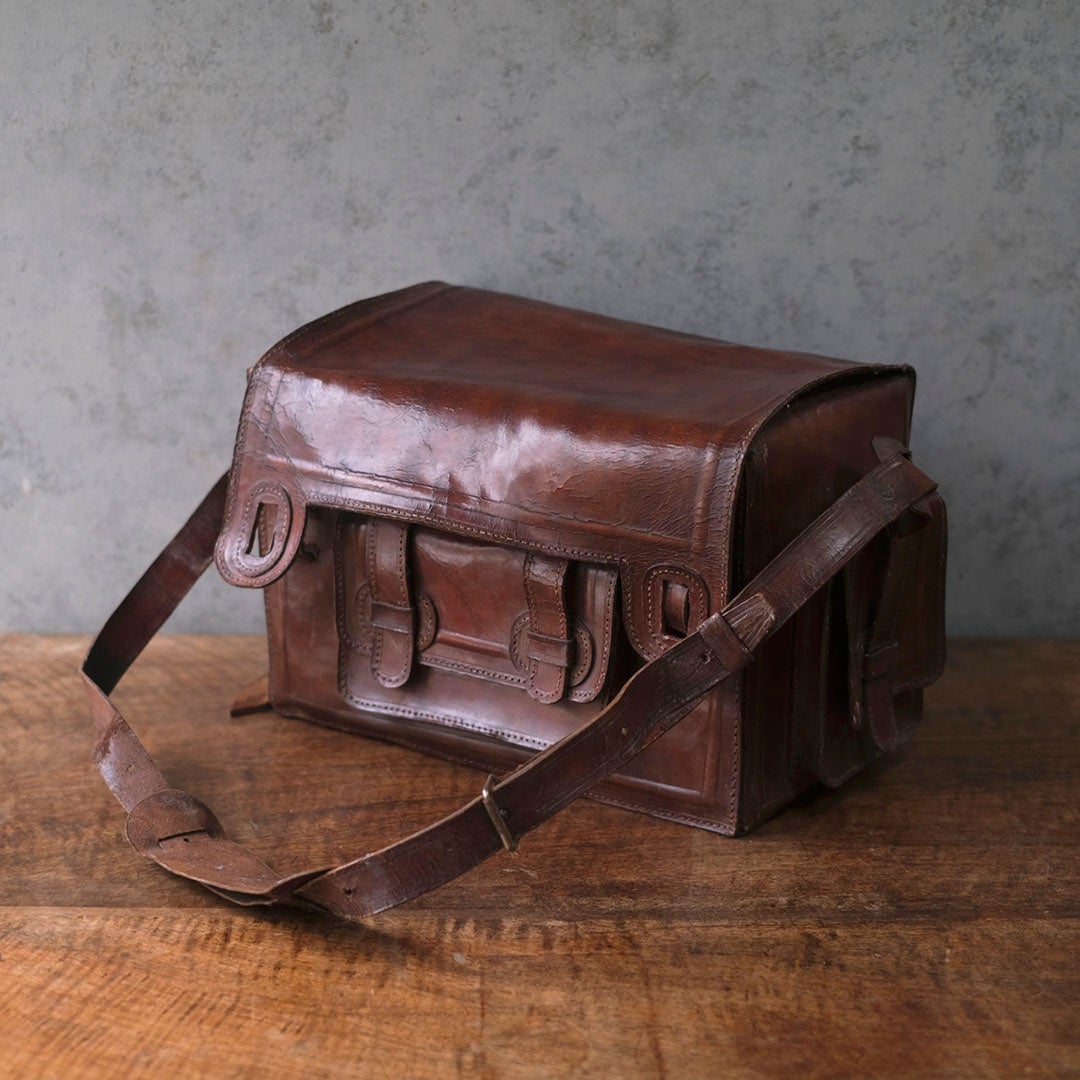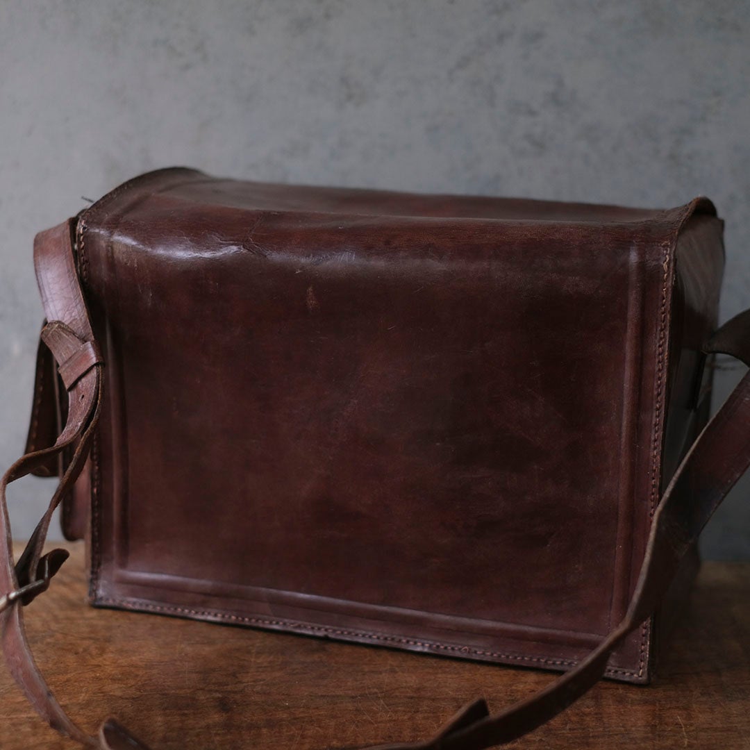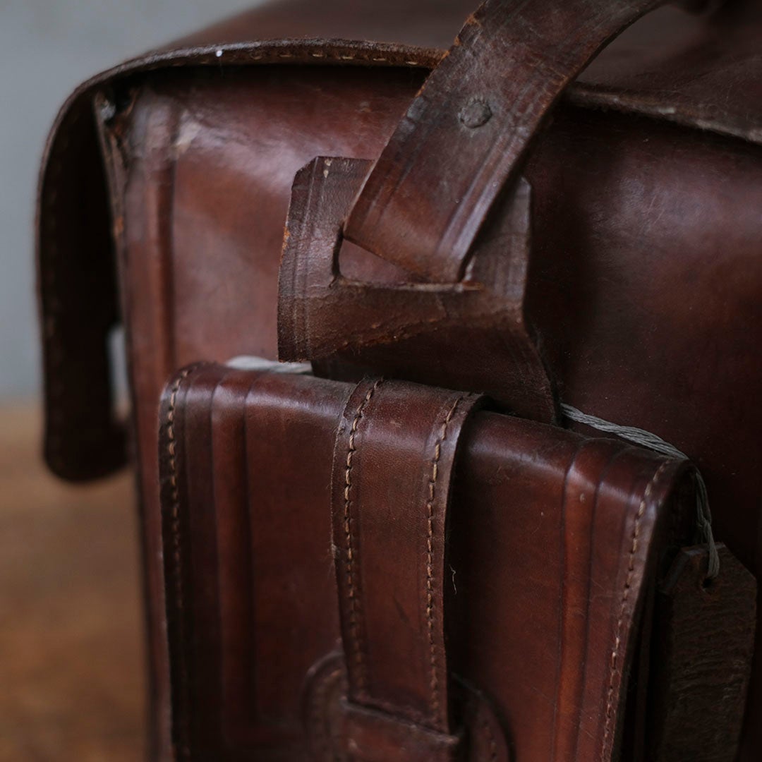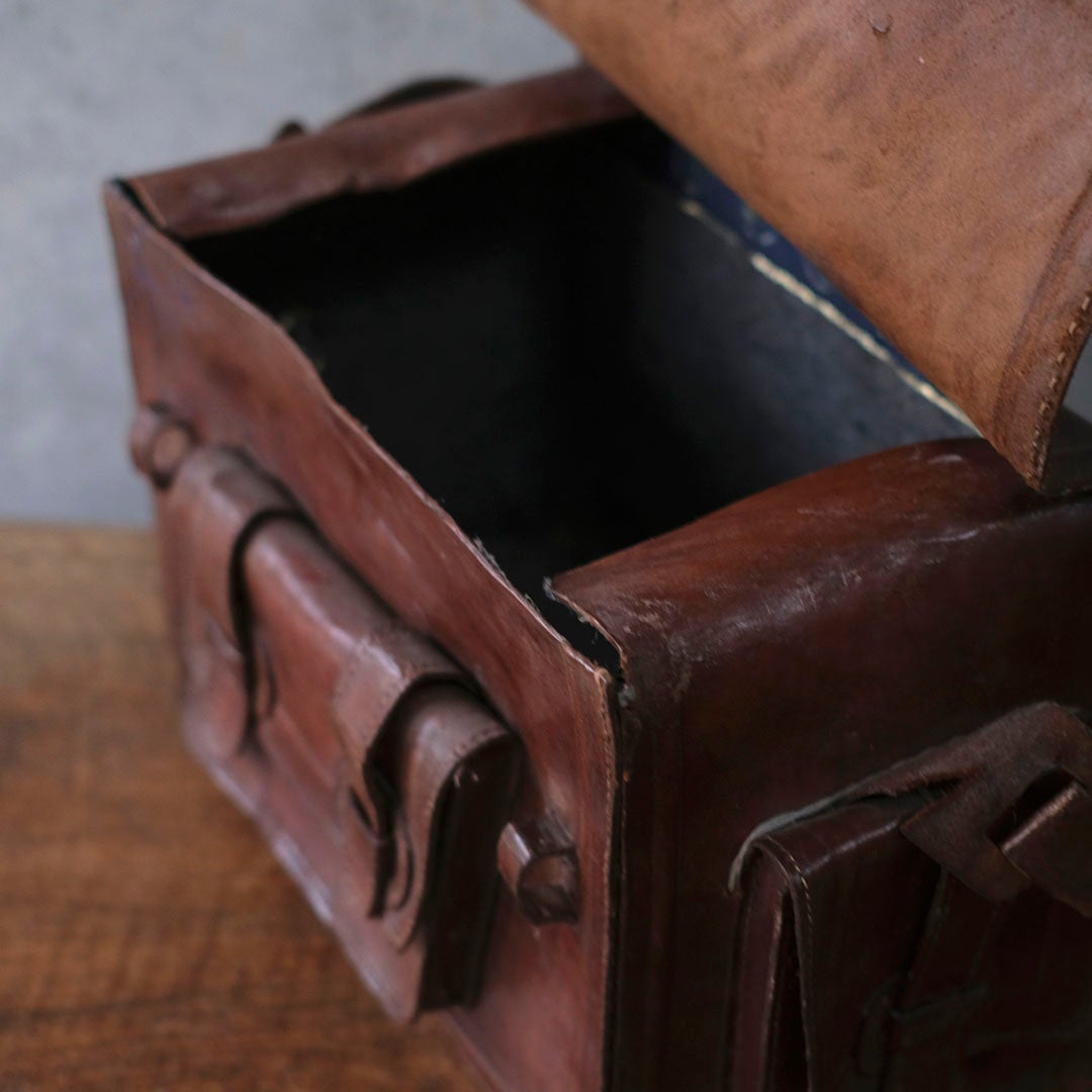 長い旅路を共にしてきたような、深い陰影を纏ったアンティーク・レザーバッグ。現代の既製品にはない、力強くもどこか温かみのある革の表情が、手にする人の日常に確かな深みと知性を添えてくれます。