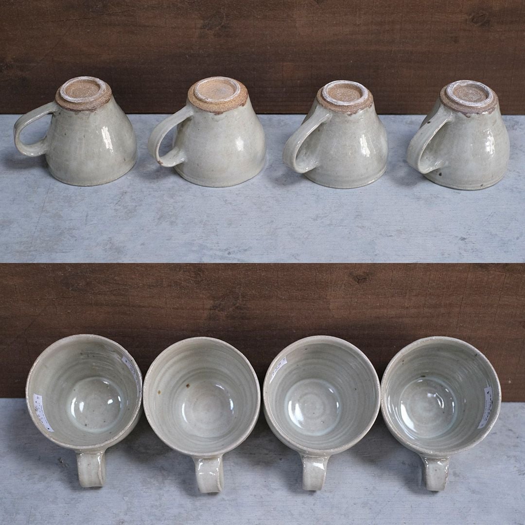 麦窯・岡泰造にによるマグカップ。ワラ釉薬と呼ばれる、原料にワラの灰を使用した釉薬による素朴な風合いが魅力的なうつわです。