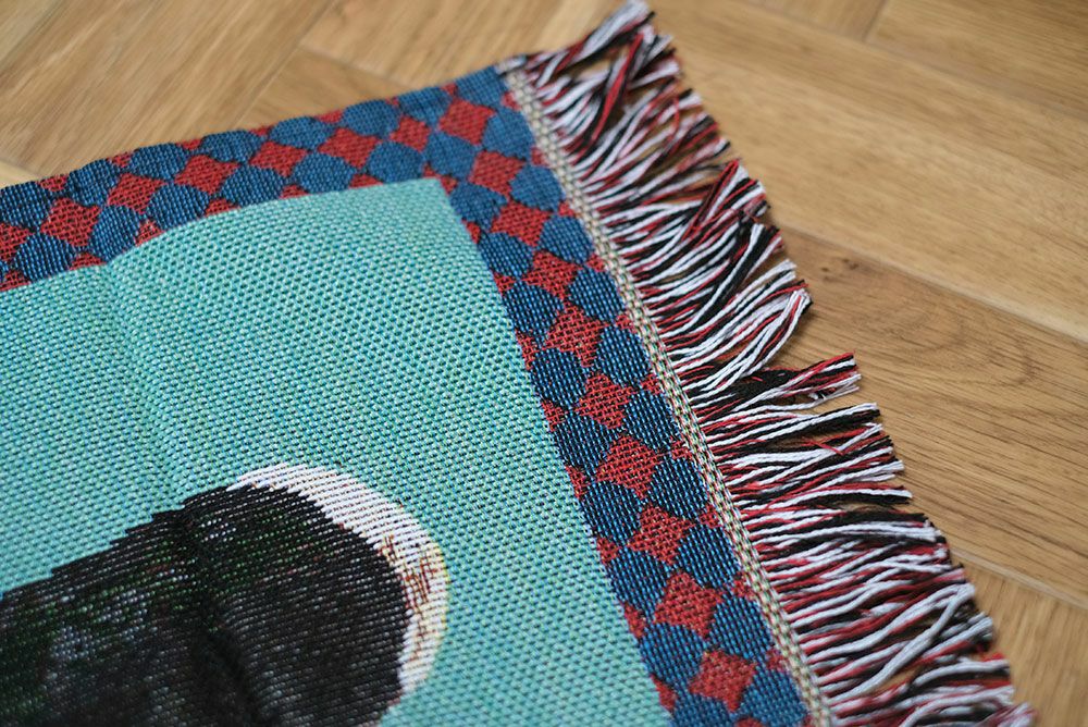フランスで活躍するNathalie Lete(ナタリー・レテ)によるハッピーなマルチマット。ブルーを基調としたゴブラン織りの布地に、パンダのぬいぐるみが描かれています。