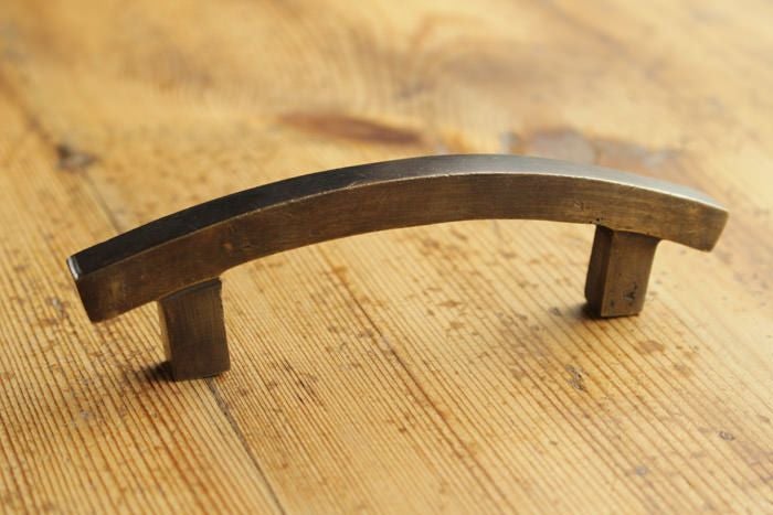 オールドブラスハンドル・カーブL/アンティーク調古色真鍮の取っ手