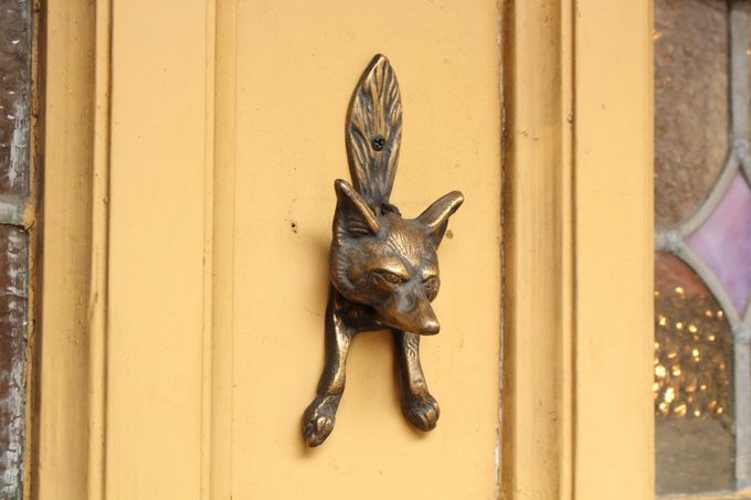 凛々しい表情が可愛いキツネのドアノッカー。アンティークのドアにもぴったりで、見るものをおとぎ話の世界へと誘います。