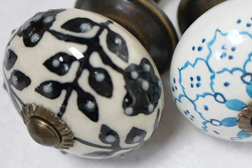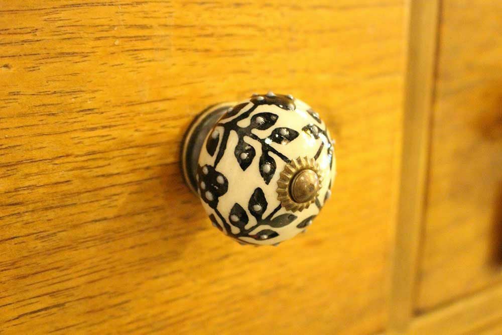エキゾチックなエスニックスタイルのデザインが可愛い引き出しやキッチンの扉、下駄箱に使える陶器の取っ手です。 裏側からナットで留めるだけなのでDIYで設置も簡単。