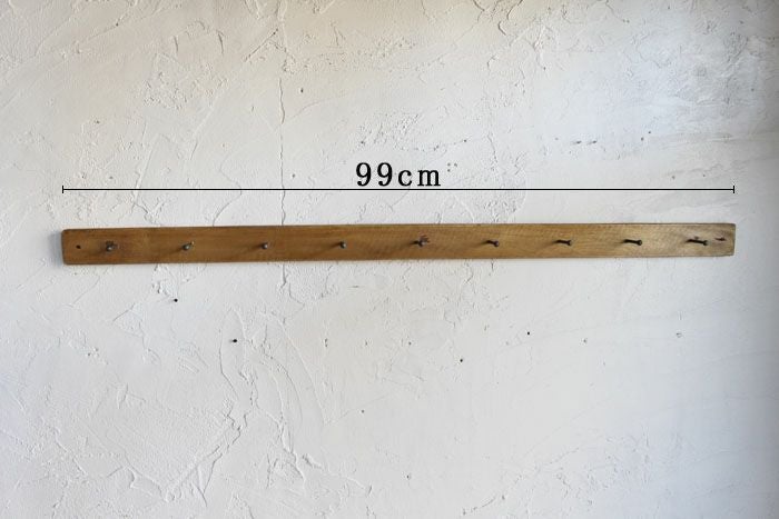 ディスプレイから収納まで多目的に使用できそうな等間隔に規則正しく並んだ9連フック。フックの感覚は約10cmくらい。