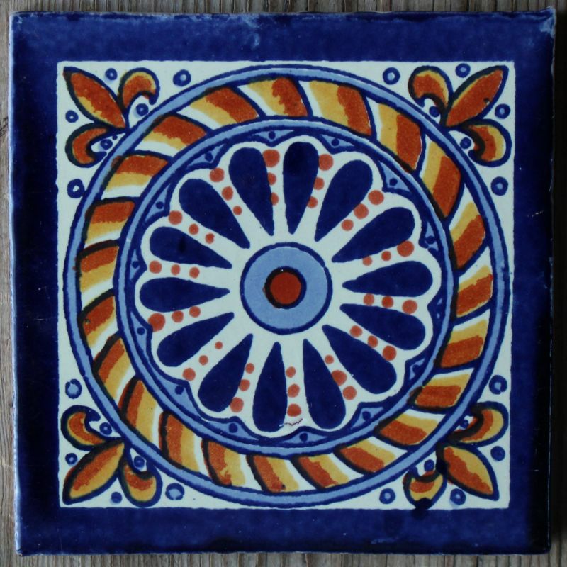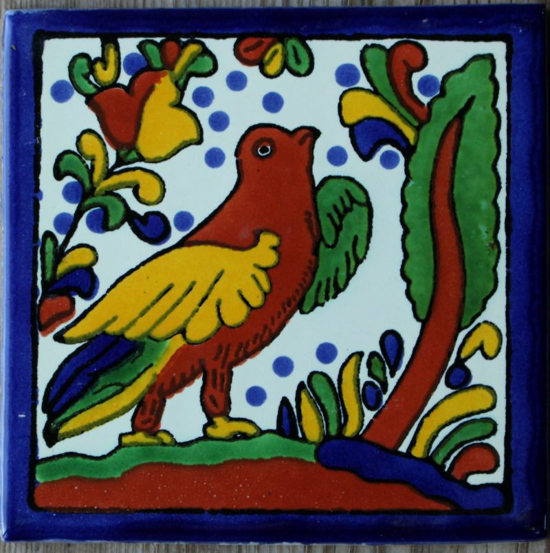 伝統的なメキシコのモチーフが描かれた素焼きされたテラコッタタイルです。ラテンのエネルギーと素朴な可愛らしさ溢れ、スペインのマジョリカタイルをルーツに職人によって成形も絵付けも全て手作業でおこなわれています。