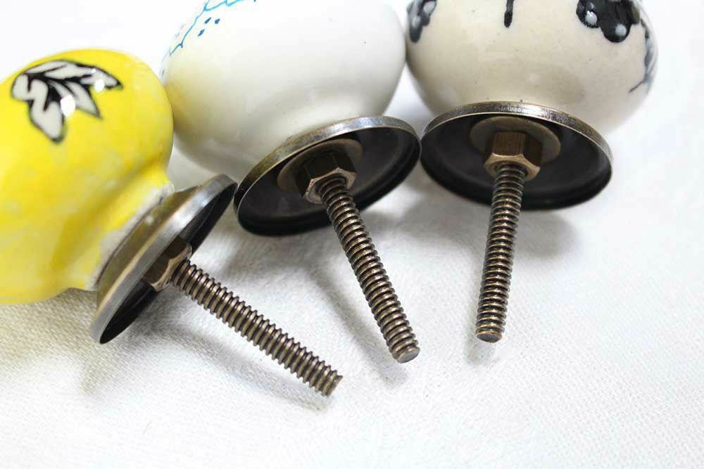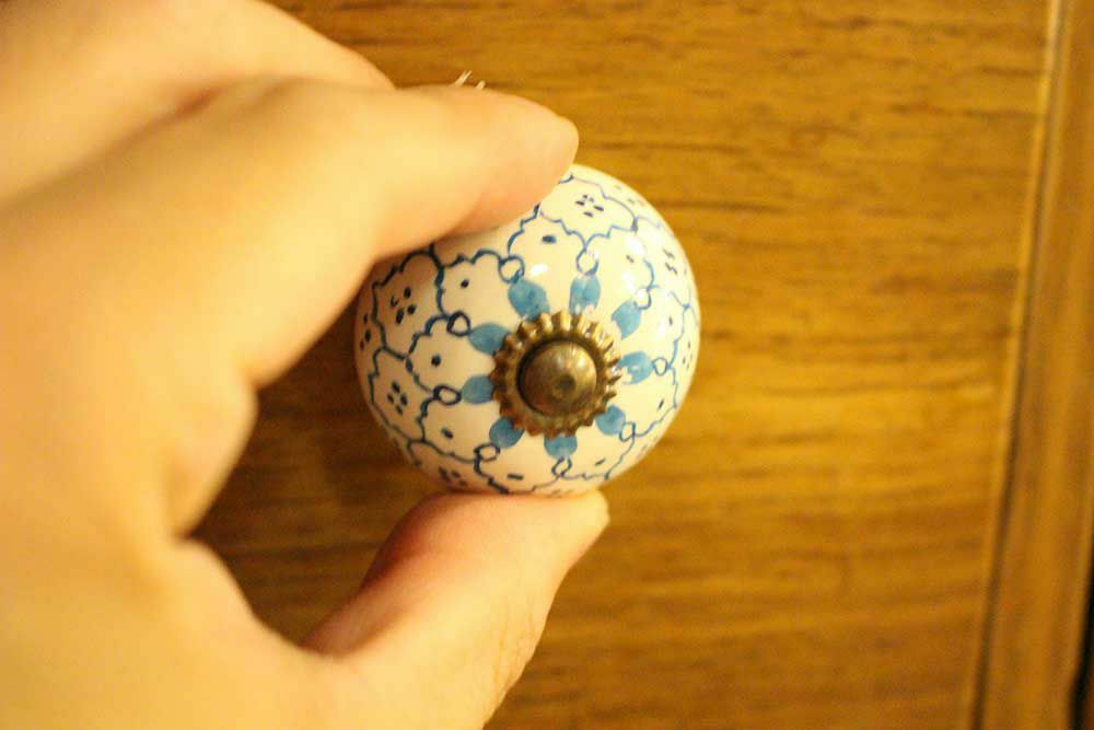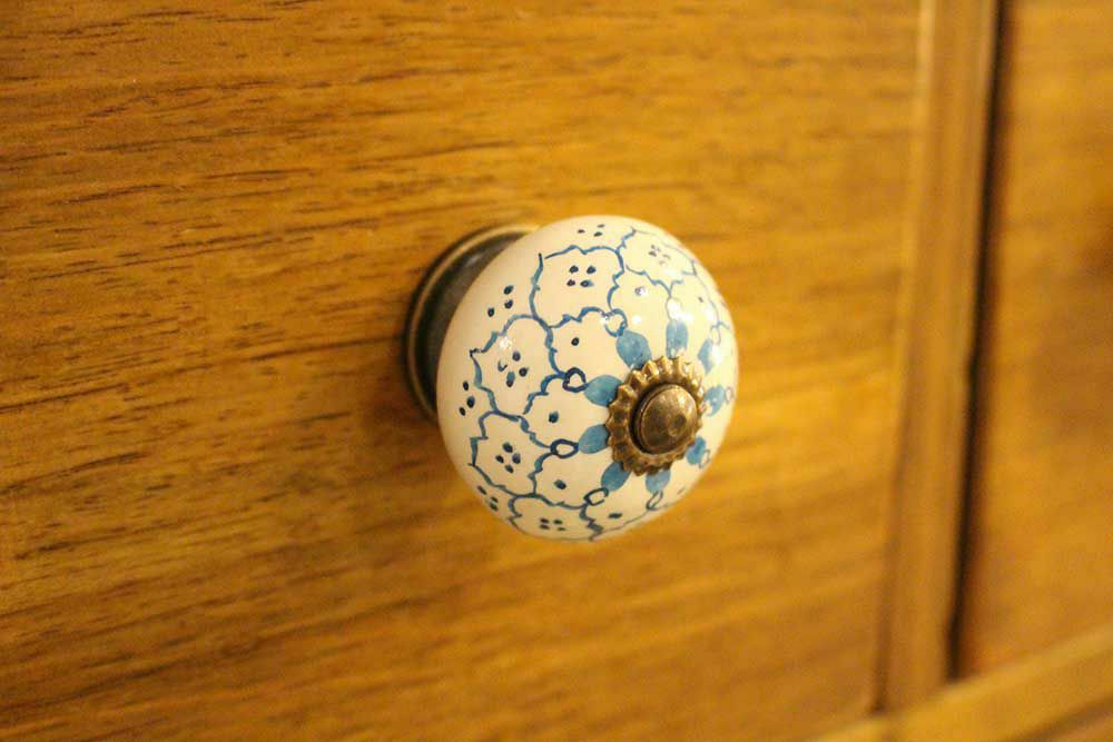 エキゾチックなエスニックスタイルのデザインが可愛い引き出しやキッチンの扉、下駄箱に使える陶器の取っ手です。 裏側からナットで留めるだけなのでDIYで設置も簡単。