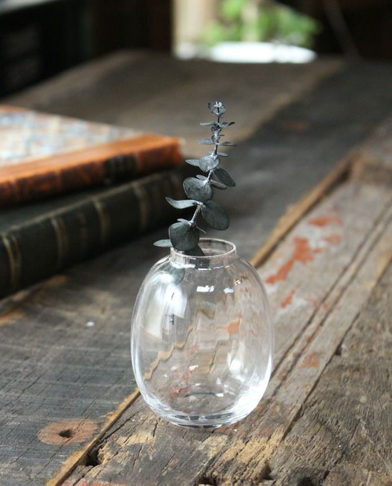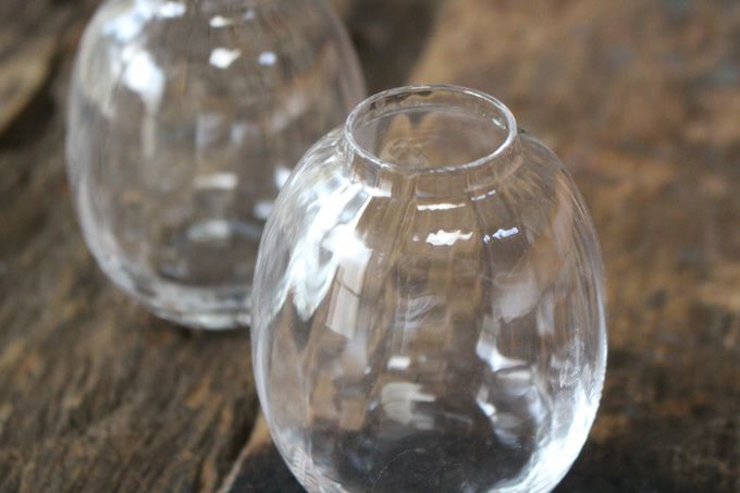 薄いガラスが涼しげなフラワーベース。細身のグリーンや華奢な感じの野花が似合いそうです。