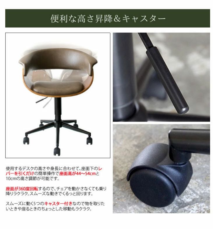 キャスターの動きもなめらかで、高さ調整も可能です。