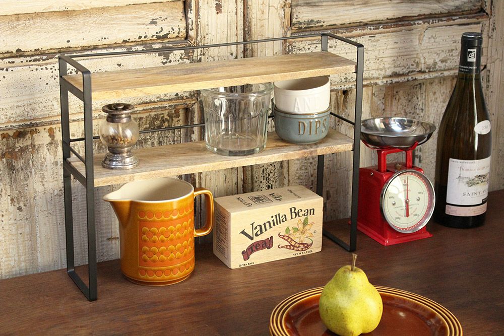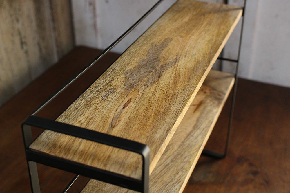デスクやキッチンに丁度いい、簡易的なラック。マンゴーウッドとアイアンの組み合わせがどんなインテリアにもなじみやすく、ワンランク上のインテリアコーディネートが楽しめそうです。